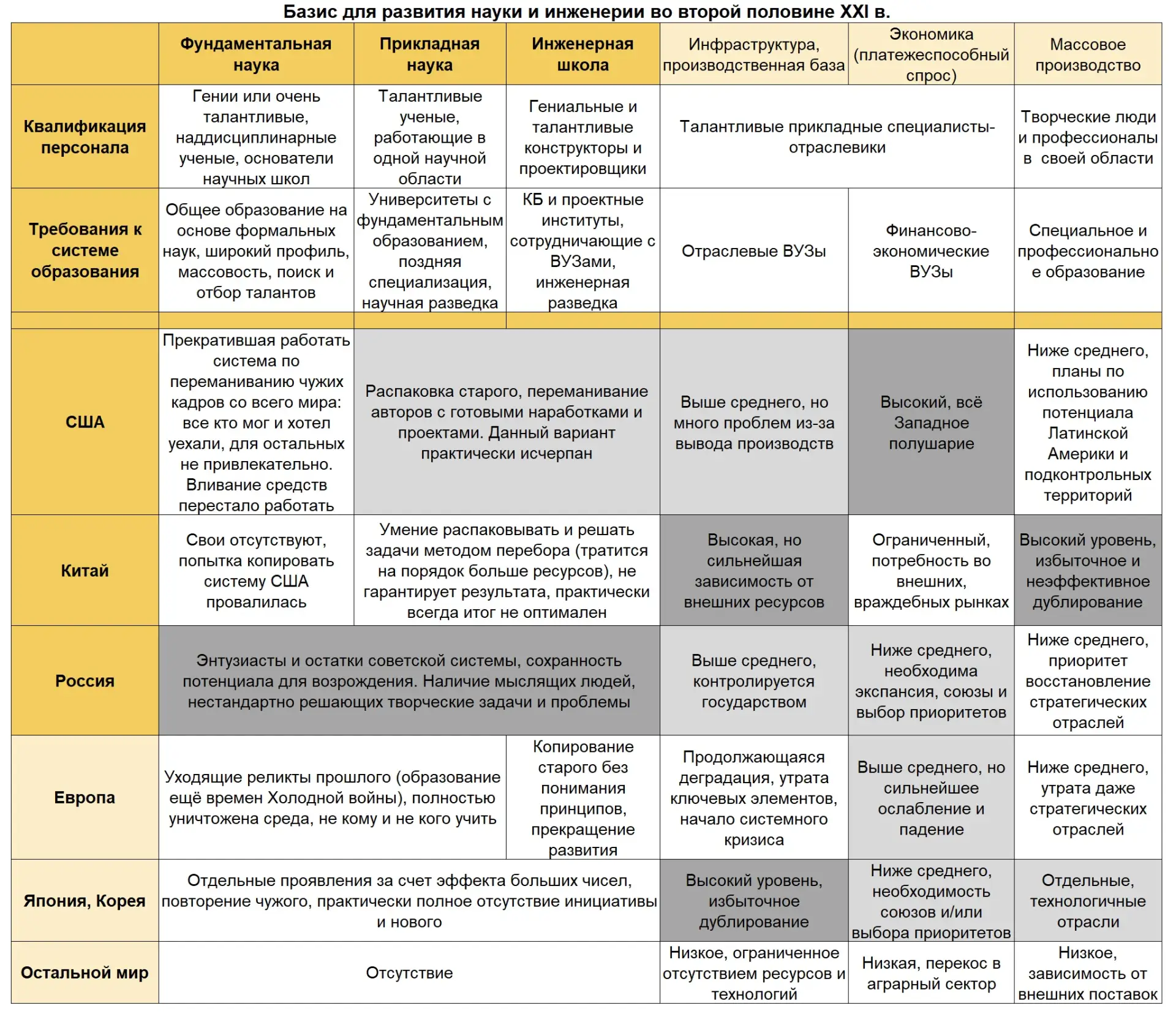 Наступившие 30 лет эпохи войн и катастроф хорошо встряхнут мир, но для запуска и возрождения научной и инженерной мысли этого недостаточно, нужен фундамент, потенциал для возрождения. Отрадно, что в настоящее время он, по сути, есть лишь у России, в ограниченном состоянии, но остальному миру приходится лишь мечтать даже о таком. Не нужно обманываться наличием индустрии, когда у неё нет будущего развития.