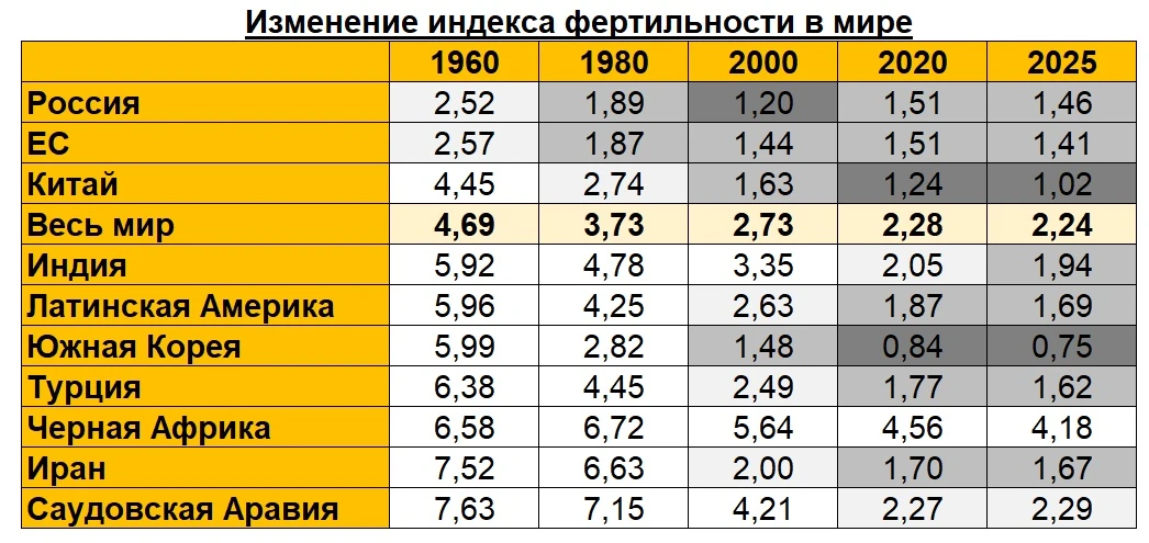 Небольшая иллюстрация к динамике демографических изменений в мире. Процессы, которые в Европе и России растянулись на 60 лет и более во многих регионах и странах заняли всего 15-20 лет, пролетая мимо уровня воспроизводства (2,13) и не понимая, где находится дно. Это общемировой тренд, пока ещё никому не удалось найти рецепт и развернуть его, пройти настоящий "Третий демографический переход", а не его либеральную обманку.