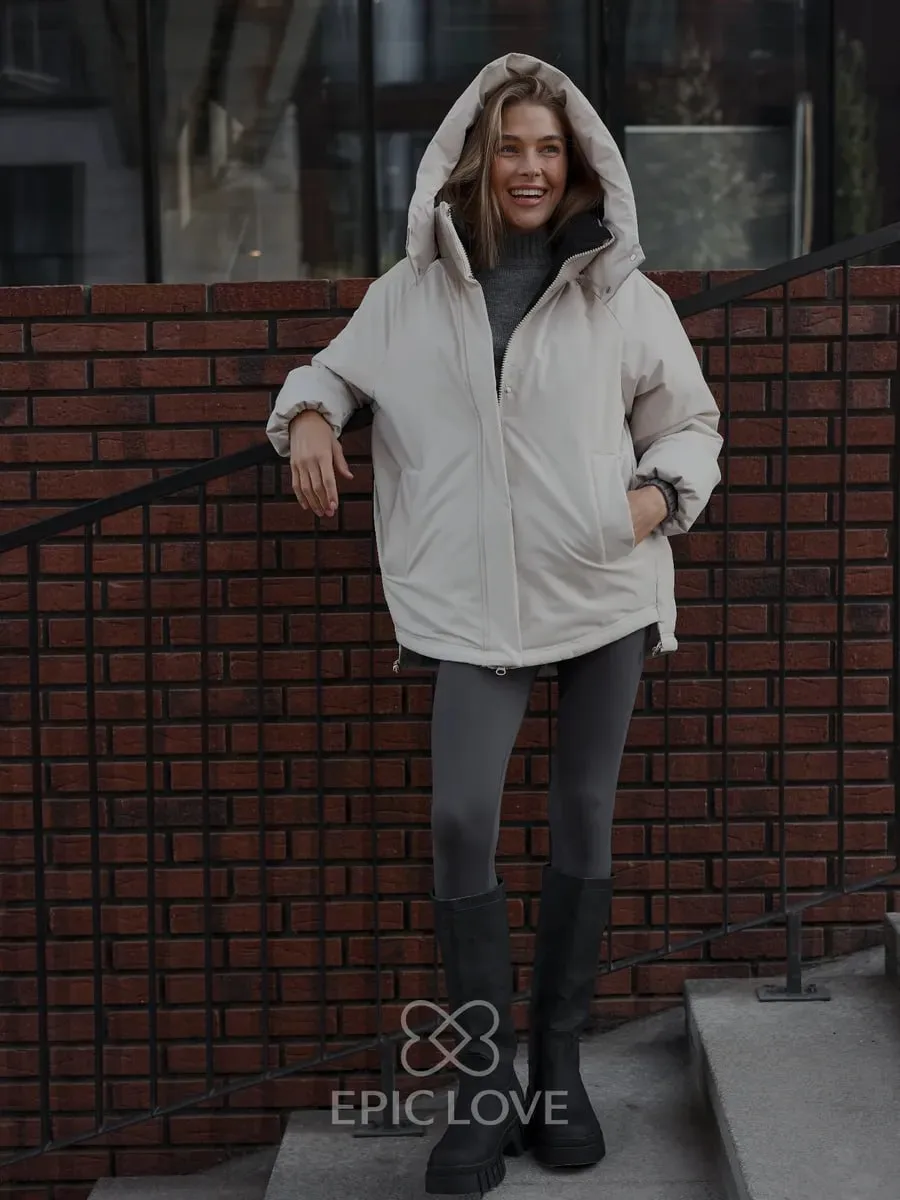 I'M UNIQUE Куртка осенняя (Ну такая лапочка, хоть и не сезон) оверсайз с капюшоном (40-54)