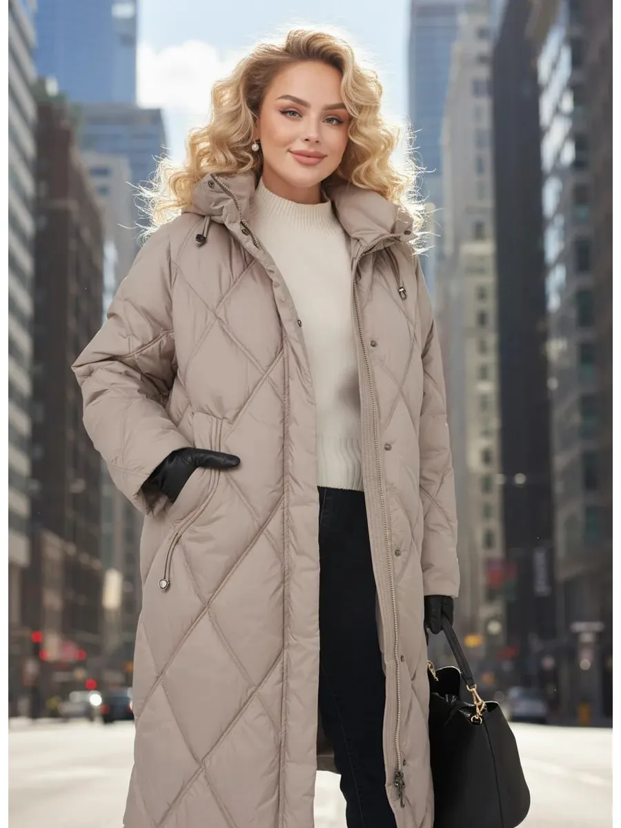 ZARONI Куртка пуховик удлиненная зимняя с капюшоном (48-56)