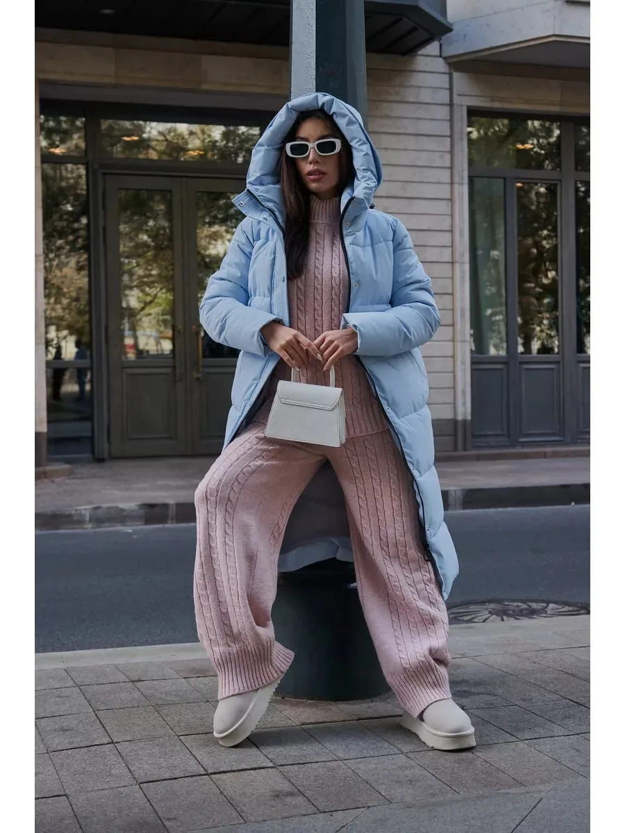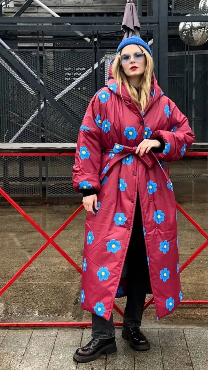 Peony Wish Пуховик зимний длинный с капюшоном и поясом (42-50)