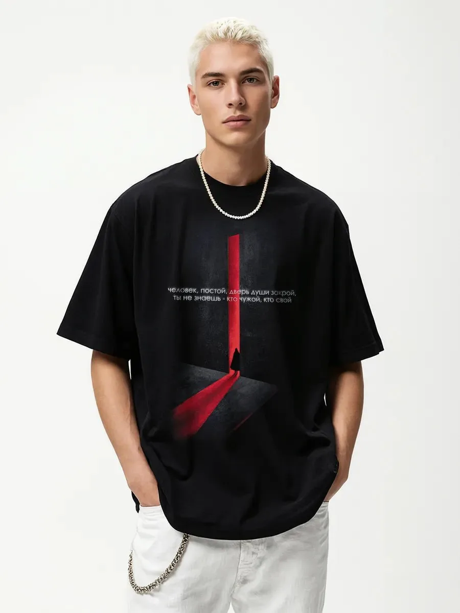RoMaxTex Футболка оверсайз с принтом дверь души (42-44)