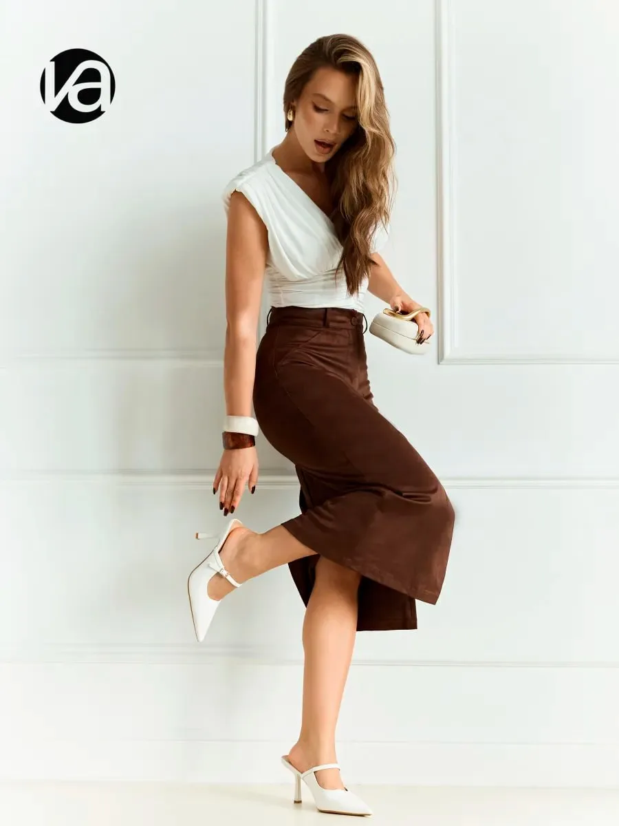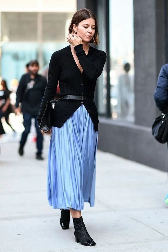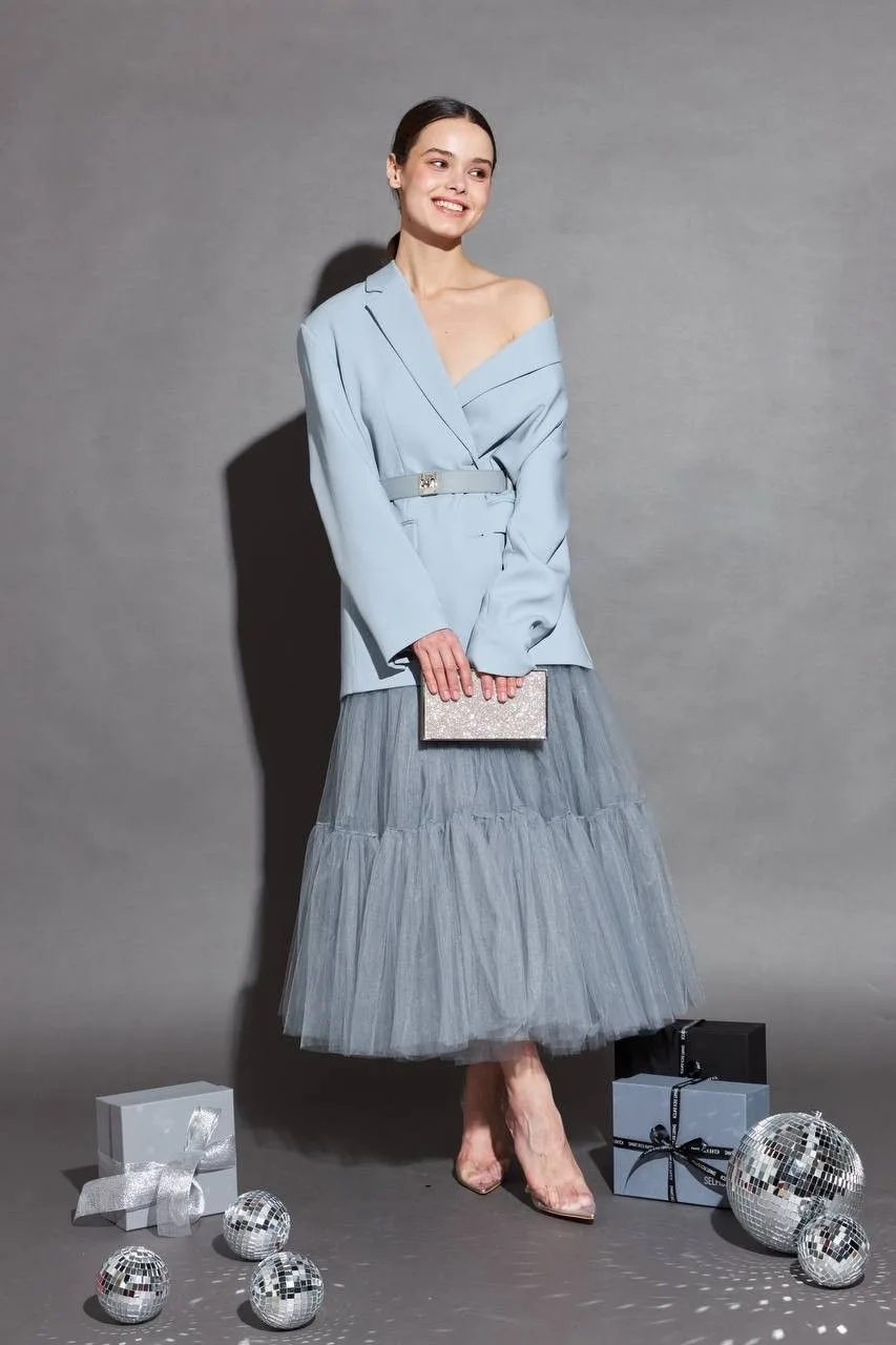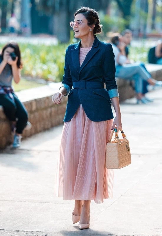 Если вам все же хочется, чтобы с вашей фигурой перевернутого треугольника образ смотрелся сбалансированным, и вам не хочется открывать ваши роскошные стройные ноги, потому что кто-то называет вашу фигуру "чупа-чупс", присмотритесь к костюмам и юбкам, которые добавляют в нижней части объема, но не слишком. Беспроигрышный вариант!