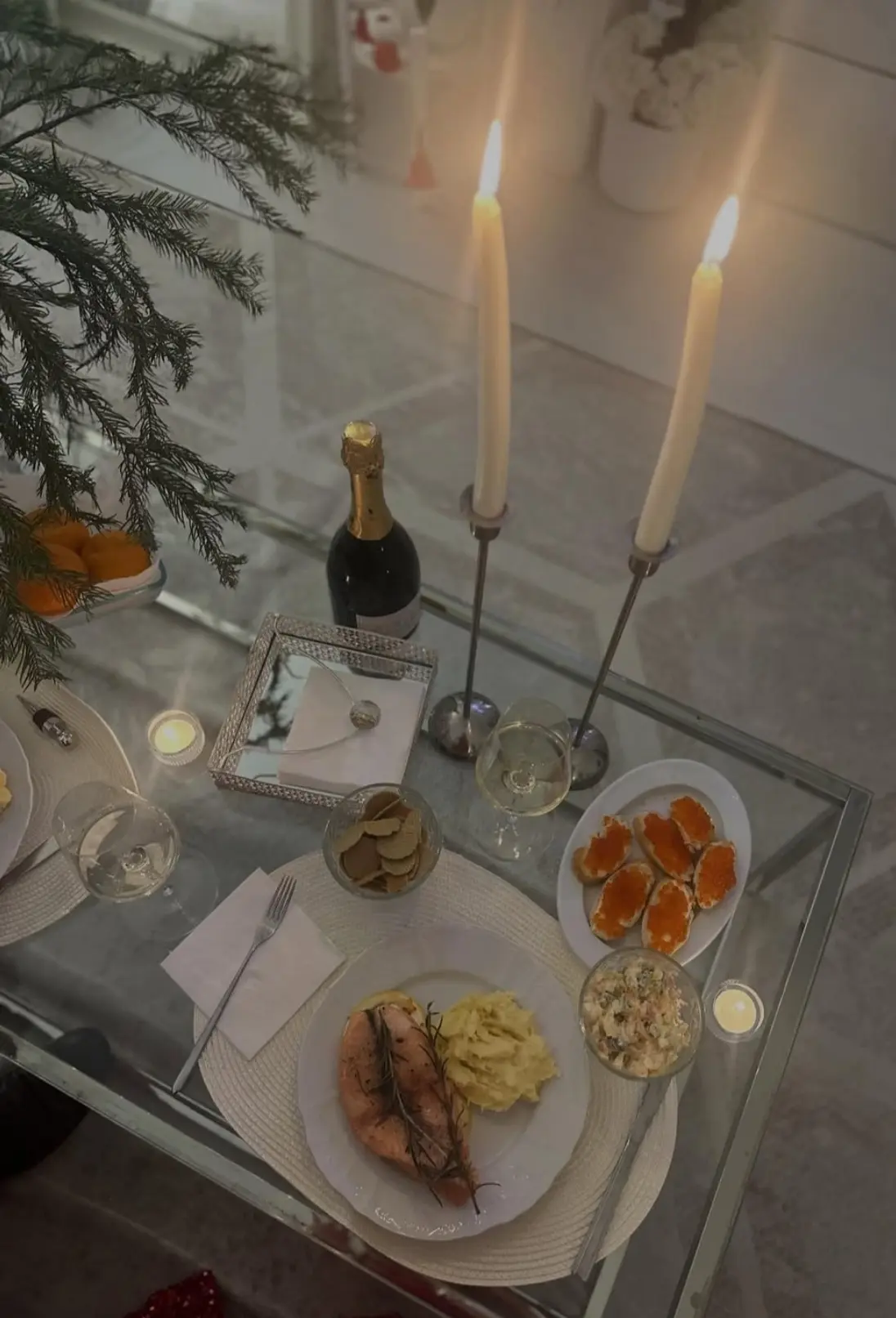 Покажу как мы с мужем в этот раз встретили наш 2026! Пожалуй, давно такого не было))) Очень камерно, тихо, по-домашнему и с душой;) Выпили шампанского, съели рыбки, я сделала свой фирменный оливье и как-то так было хорошо и нежно…🎁 Оба в красном:)))💃🚶♂️Нарядные, но не слишком, как-то спокойно, да и так хорошо!❤️