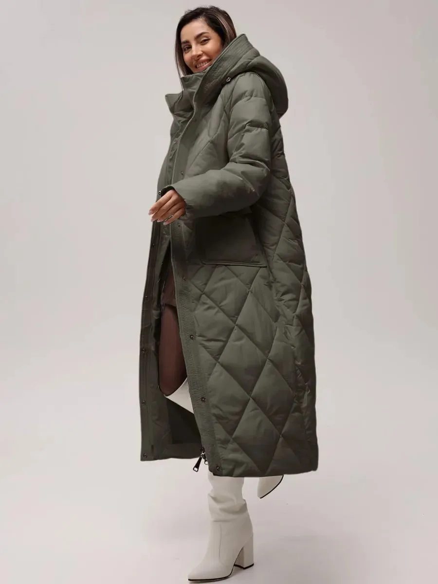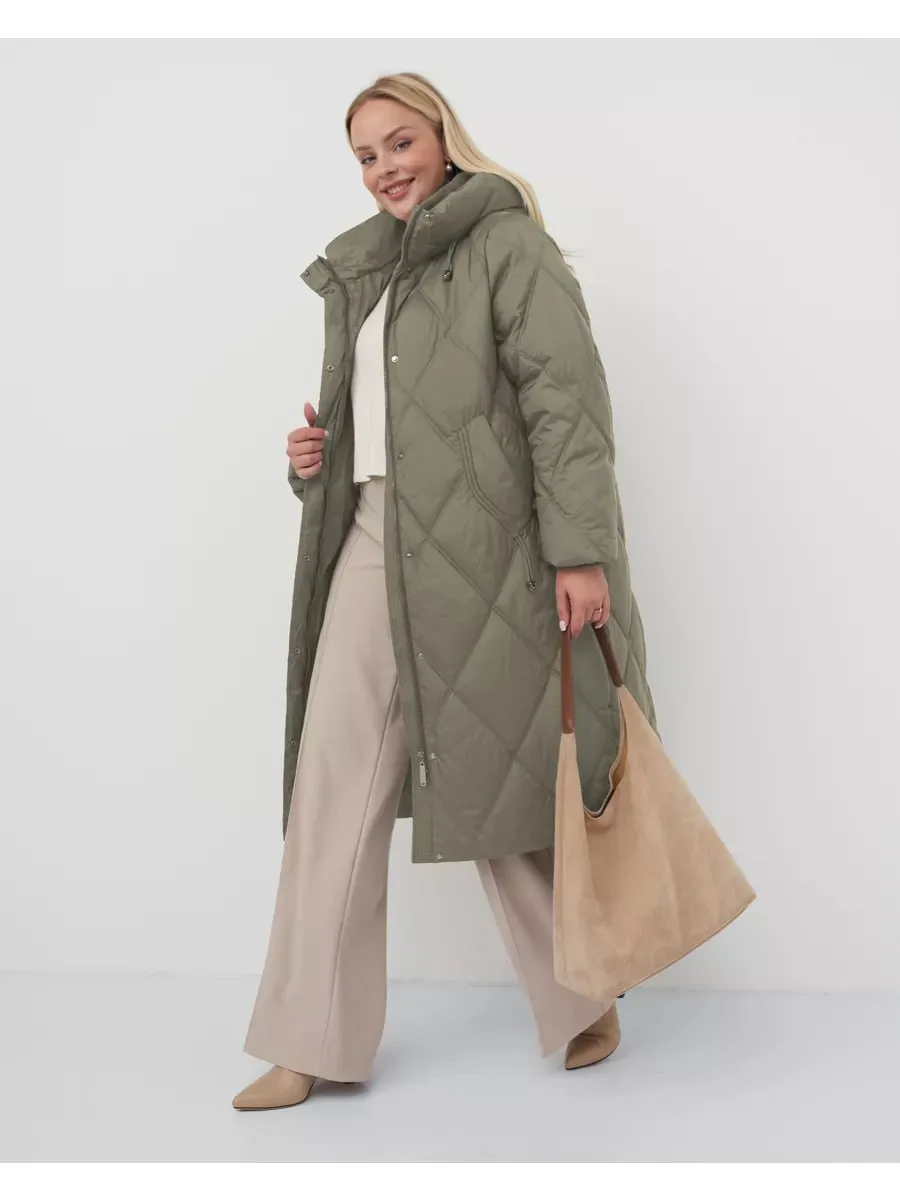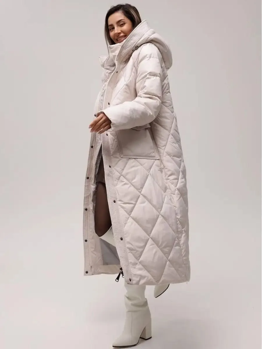 Ultra-Moda Пуховик зимний длинный с капюшоном, пальто теплое (40-56)