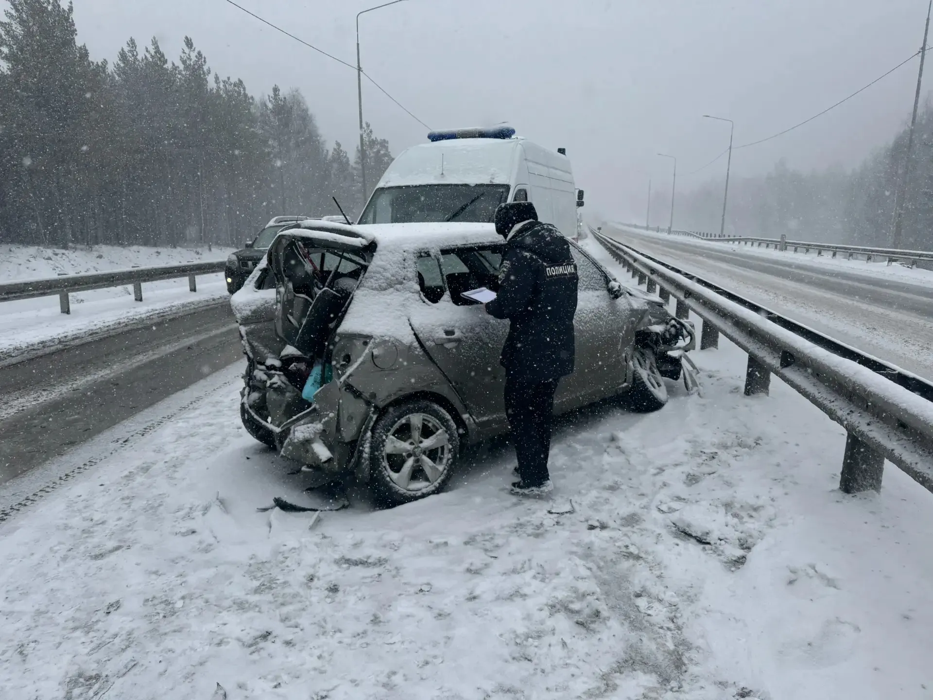 Установлено, что все три транспортных средства эксплуатировались на летних шинах в период сложных погодных и дорожных условий: выпадения снежных осадков и колебания температуры от нулевой до минусовых отметок, что явилось одним из условий, способствовавших совершению данного ДТП.