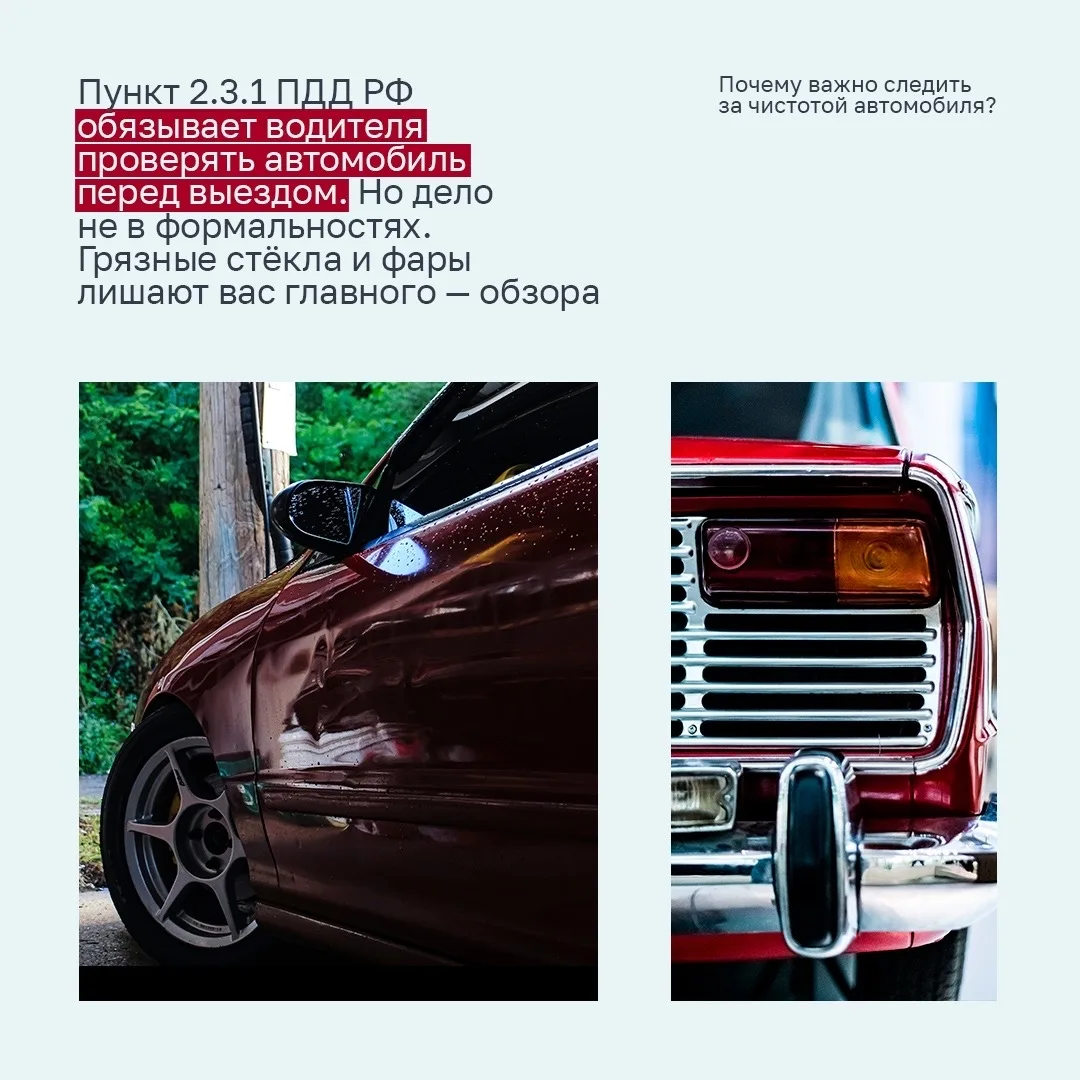 ✅ Почему важно следить за чистотой автомобиля, рассказали в карточках.