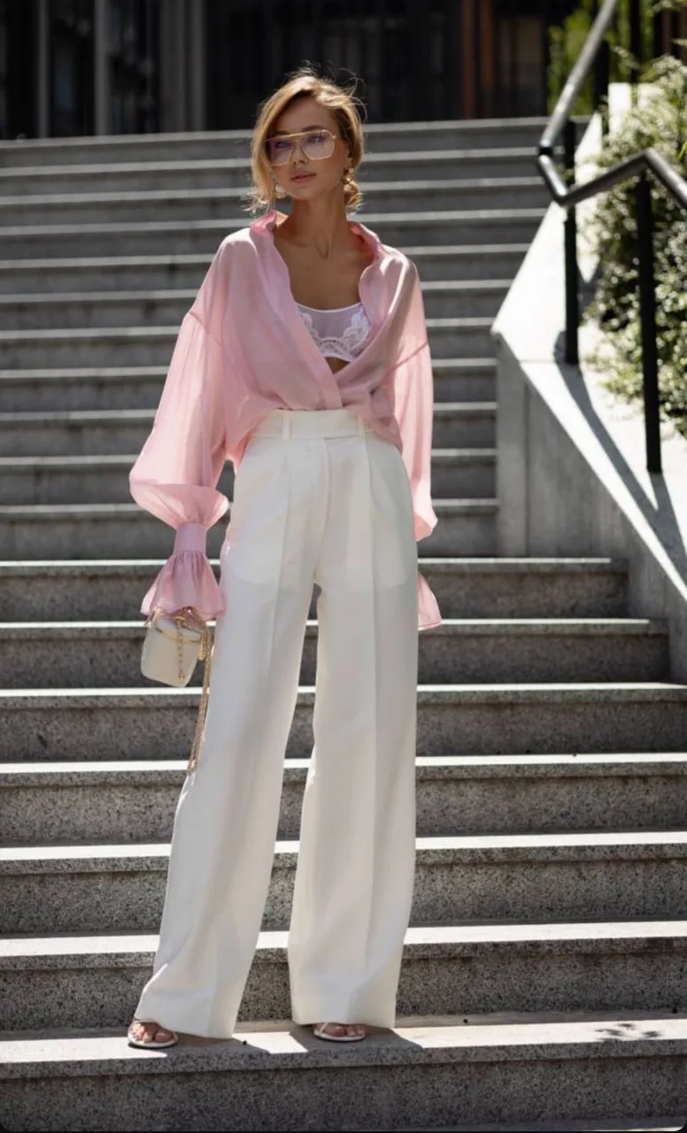 - Объёмные брюки и шаровары — комфорт и свобода движений снова в центре внимания. Сочетайте их с летящими топами или грубой кожей для контраста.
