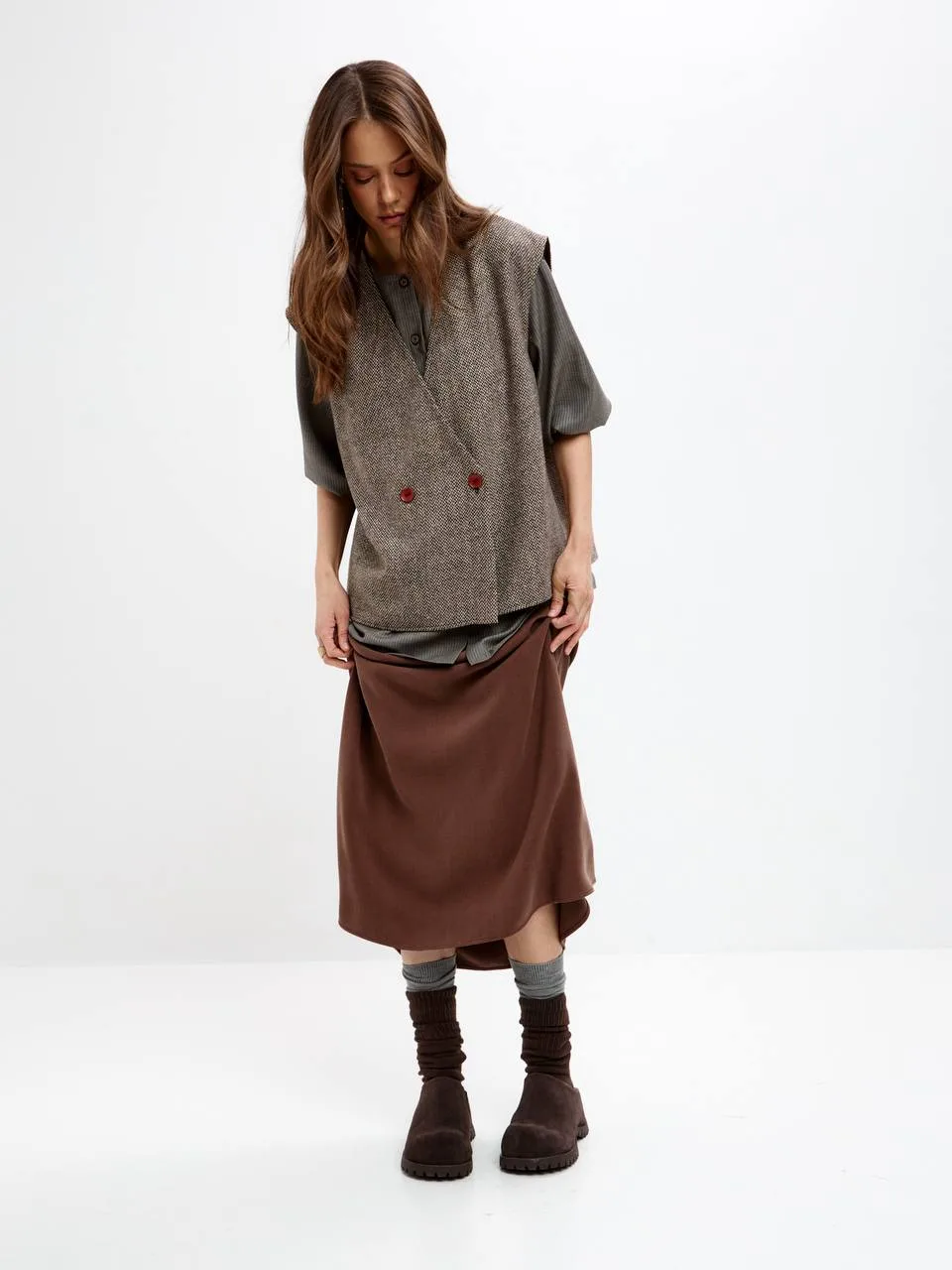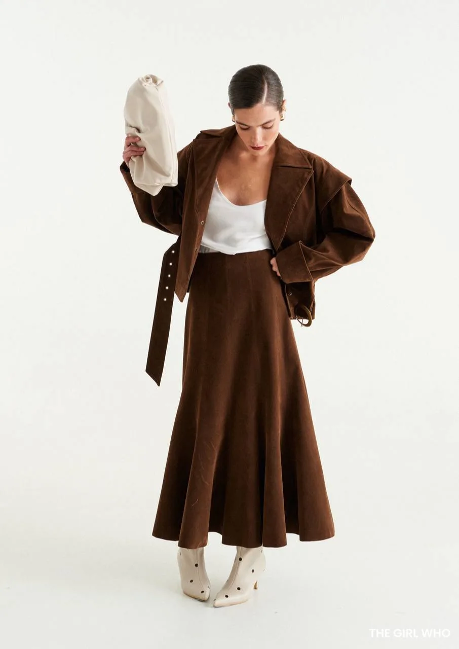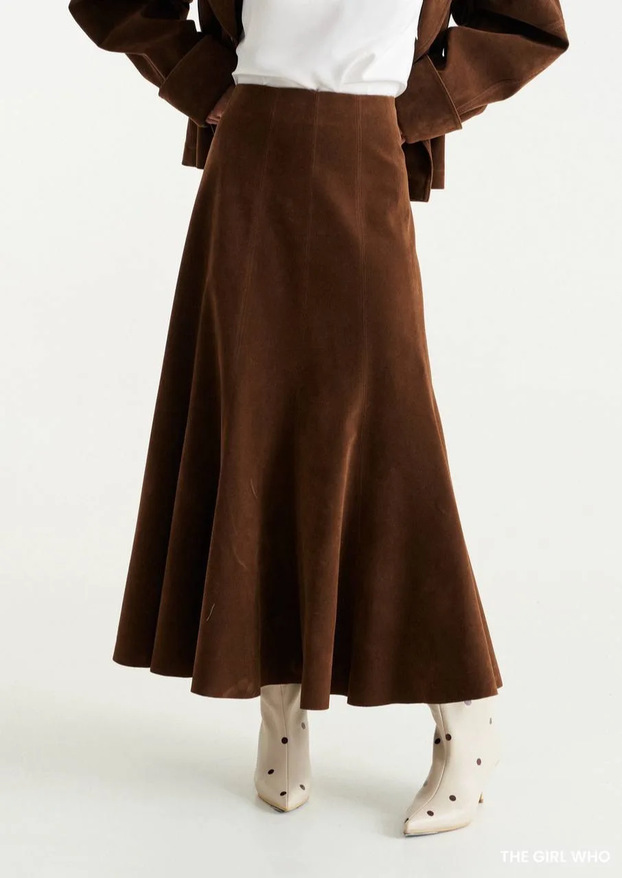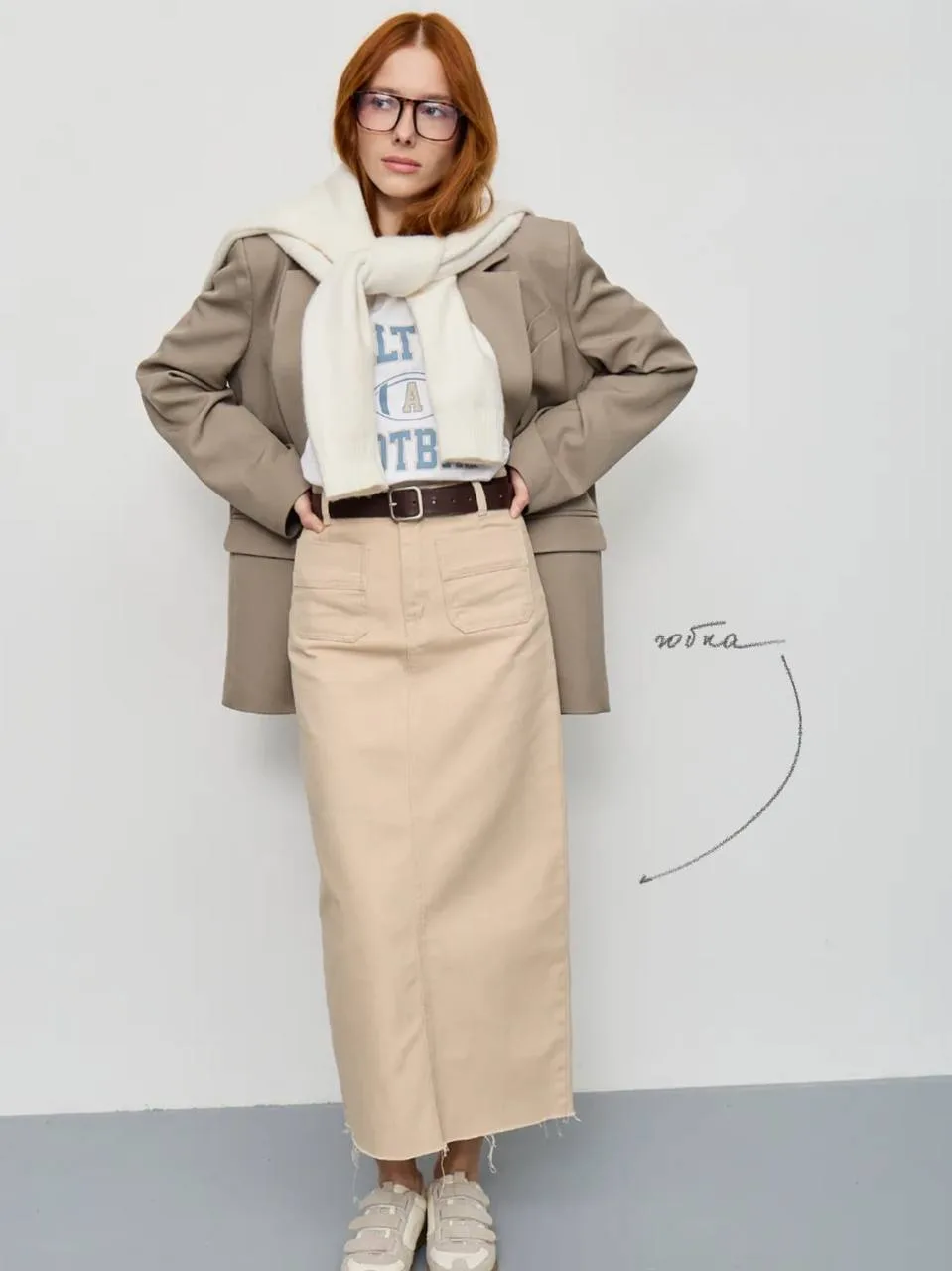 Сначала приглянулась эта форма юбки в джинсе, но теперь думаю, что замшевый вариант будет смотреться ещё интереснее и универсальнее🤎