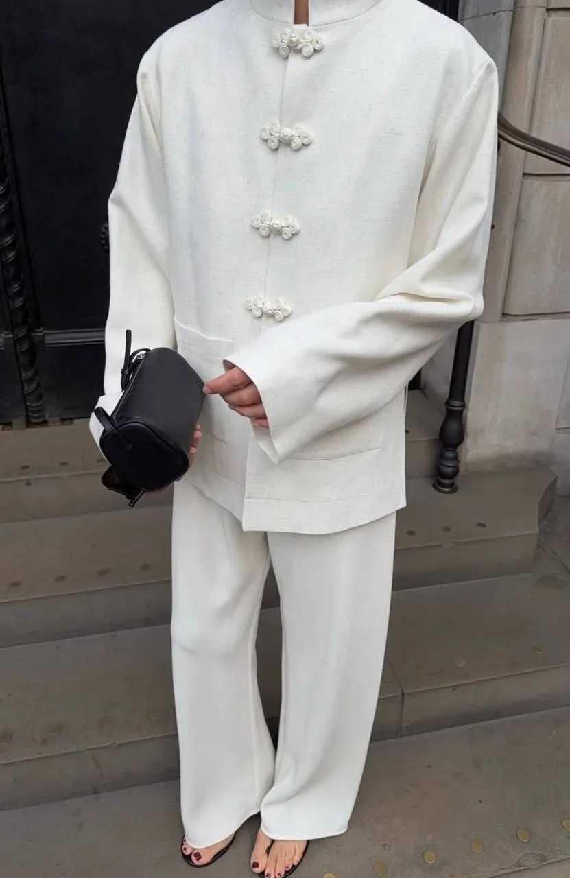 Понравилась эта блуза в азиатском стиле 🩵Будет замечательно выглядеть и с юбками, и с джинсами.