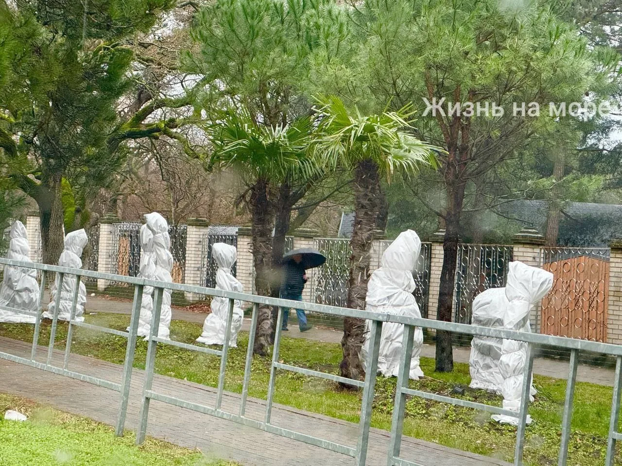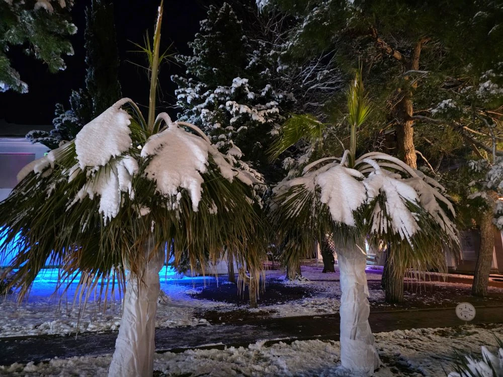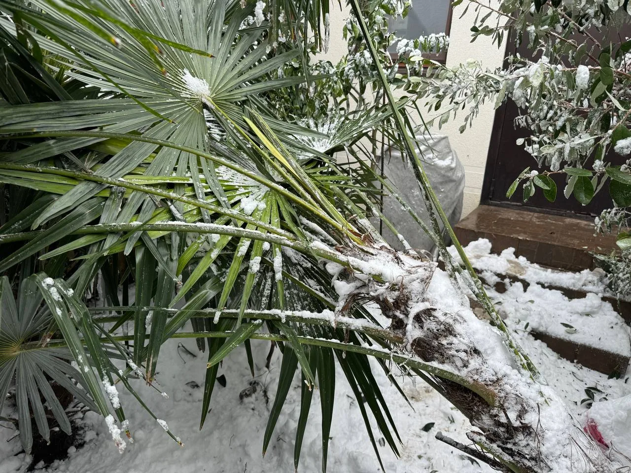 Накануне в городе укрыли все пальмы которые более зимостойкие ( трахикарпусы и хамеропсы ) а вот вашингтонии не укрыли до конца, очень странное решение!!!