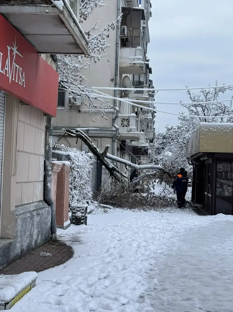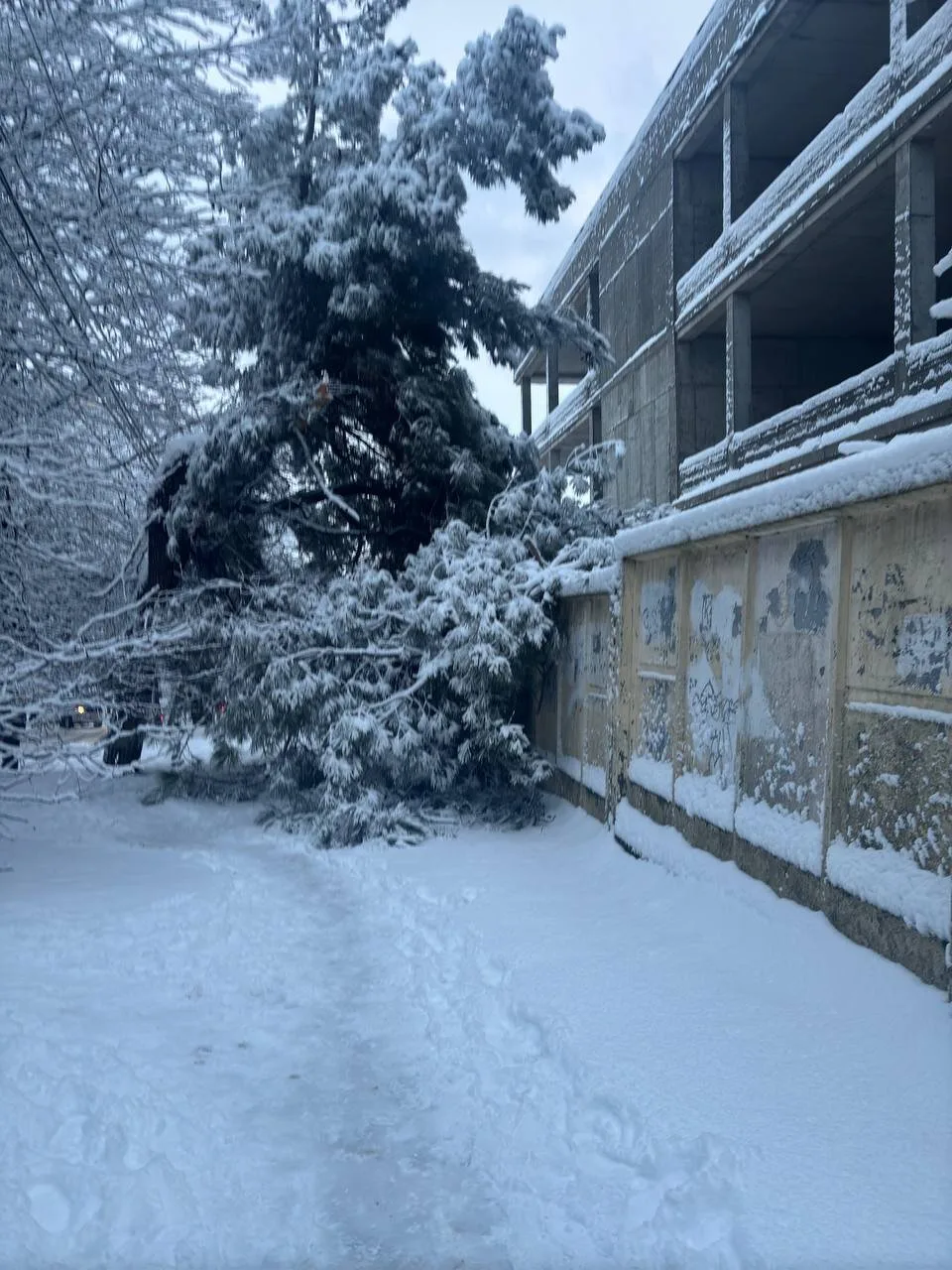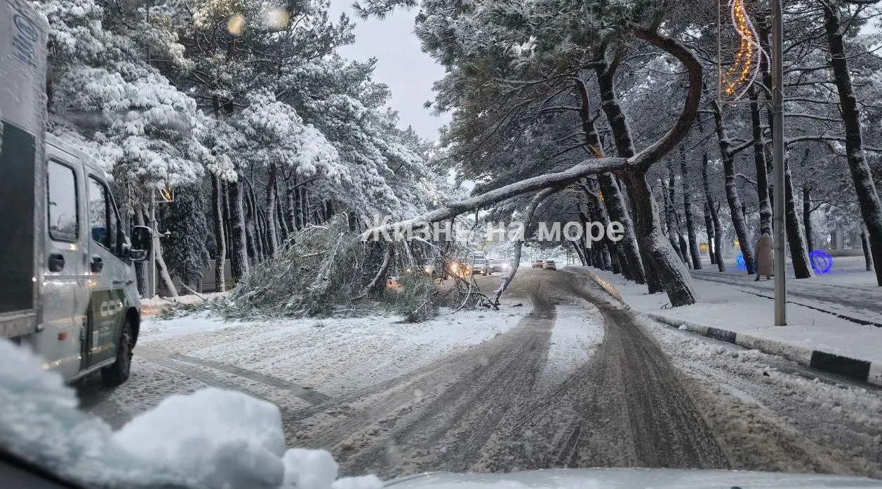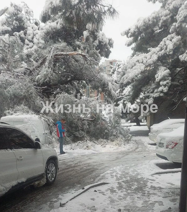 Жало деревья сегодня утром в Геленджике.... Падают под тяжестью снега