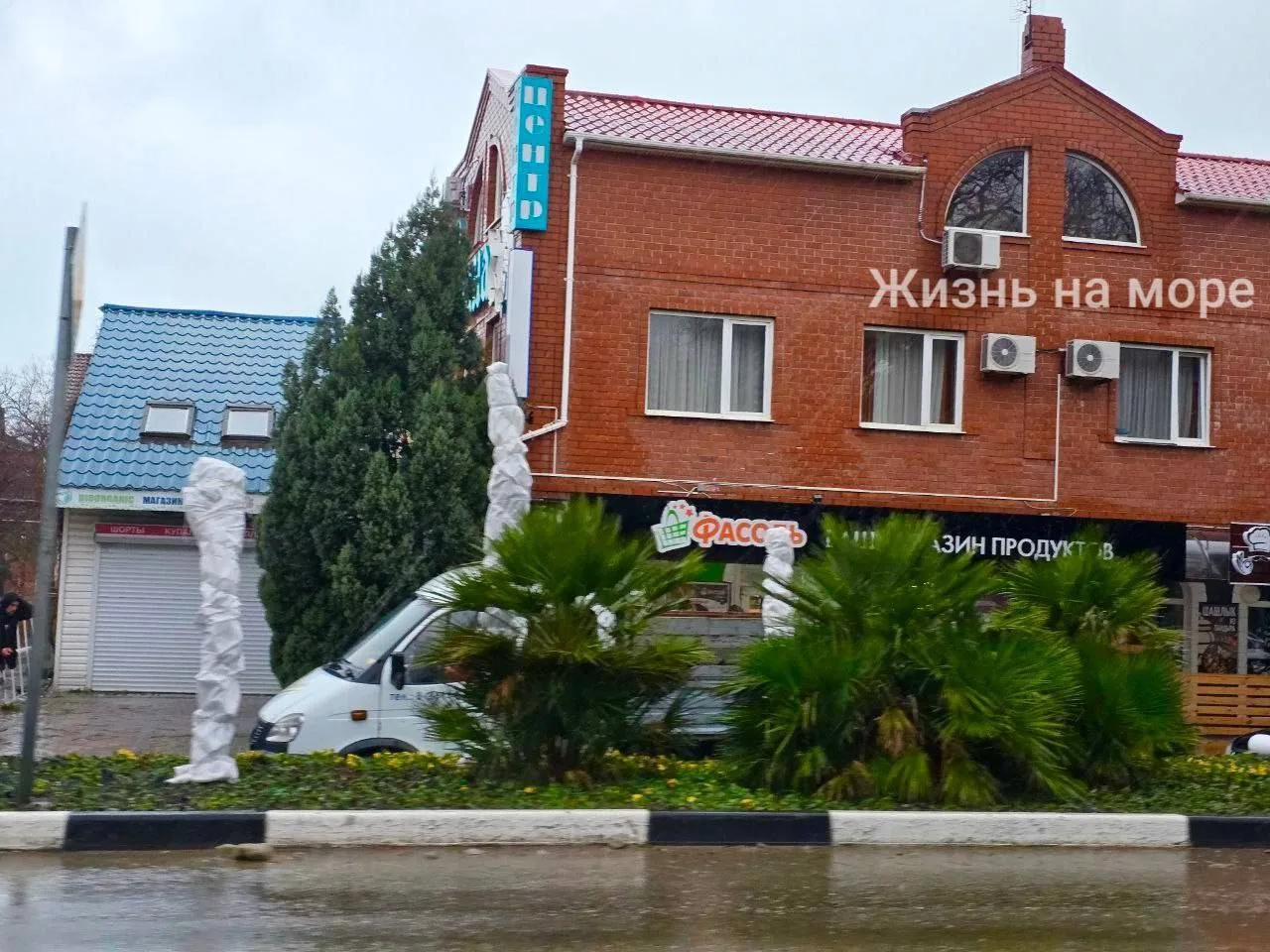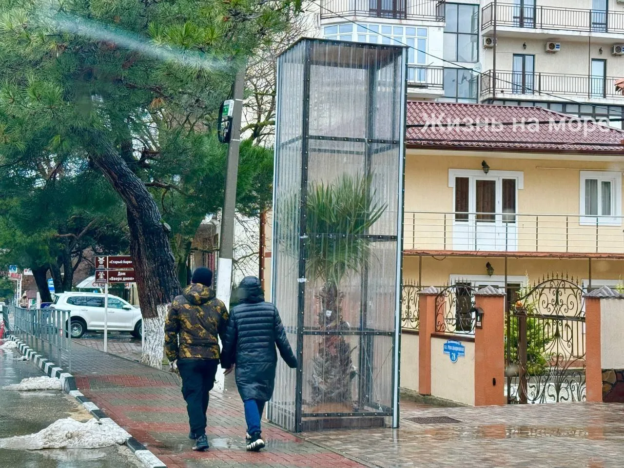 Пальмы Вашингтонии в центре Геленджика так и не укрыли. Стоят мерзнут. Никому ничего не надо😞