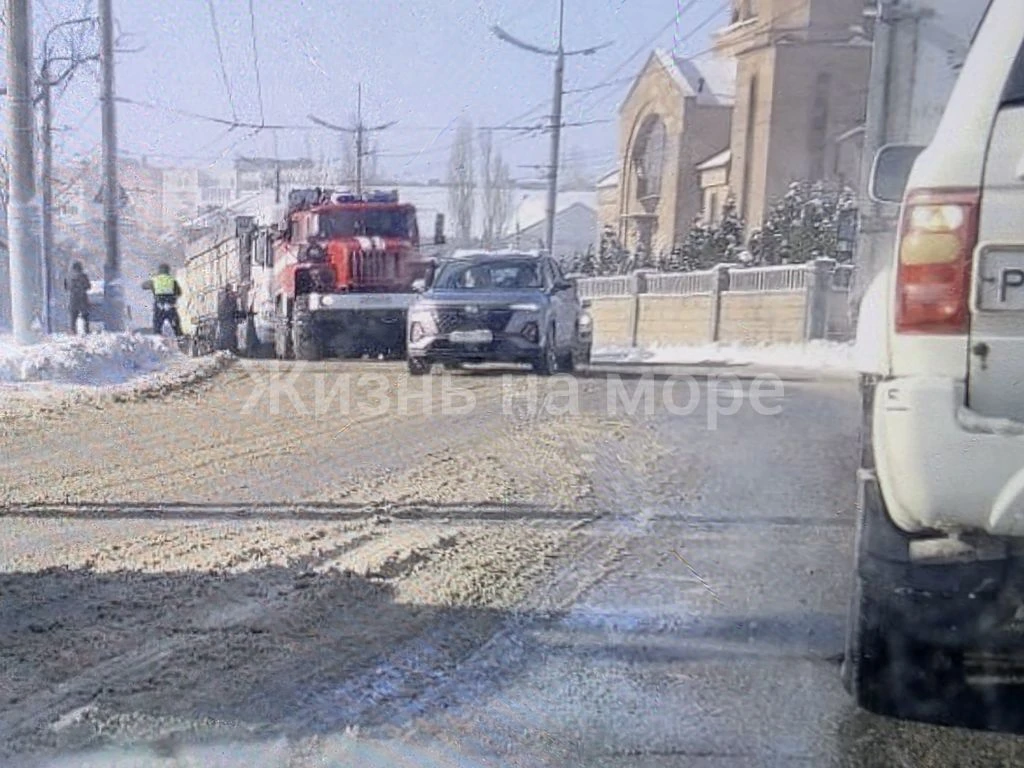 В Новороссийске фура встала на подъёме у церкви и все заблокировала