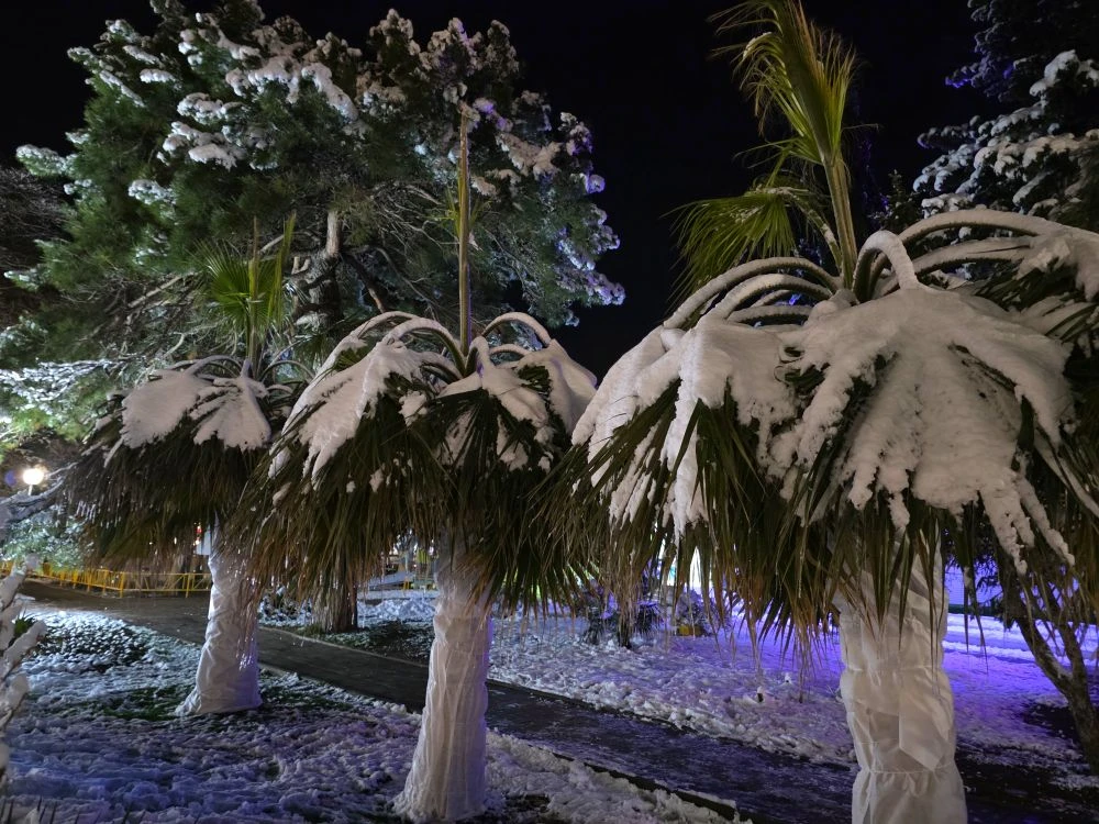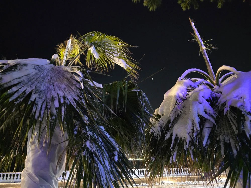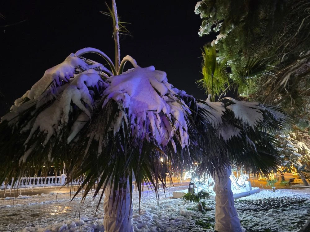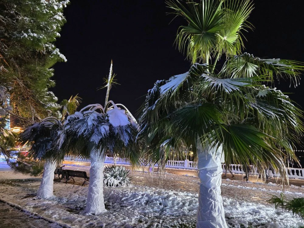Замерзшие пальмы, снег и парящее море. Морозная красота в кадрах vivexx и Анапское черноморье