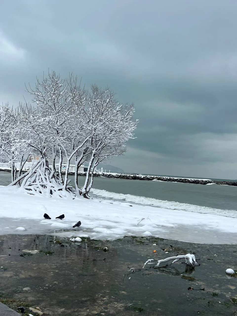Оливки в ожидании Норд-оста на набережной Новороссийска, под ногами отменный каток, мороз и солнце