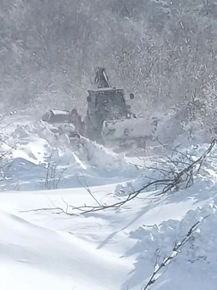 Сложная обстановка сохраняется в микрорайоне Голубая Бухта из-за обильного снегопада. Техника работает непосредственно на этом участке.