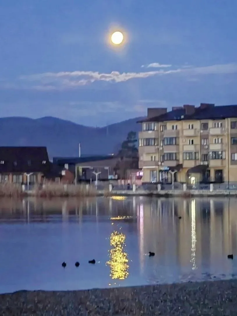 Луна перед рассветом сегодня🌝