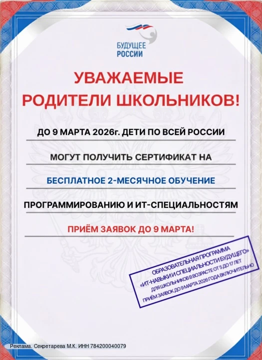 🎓До 9 марта каждый ребенок в возрасте от 5 до 17 лет может получить сертификат на 2 месяца бесплатного обучения программированию и ИТ-навыкам.