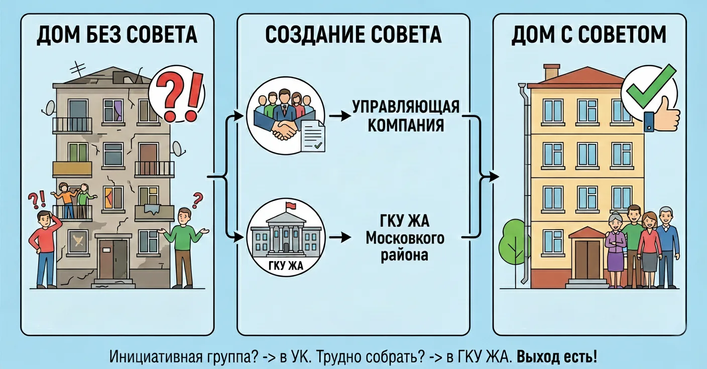 🏪Согласно п. 1 ст. 161.1 ЖК РФ и п. 2.2.1.5.10 устава районных ГКУ ЖА, вам обязательно помогут, поскольку обязанность провести собрание собственников и выбрать Совет дома, в случае, когда у жителей дома и УК это сделать не получилось, за ГКУ ЖА закреплена законом.
