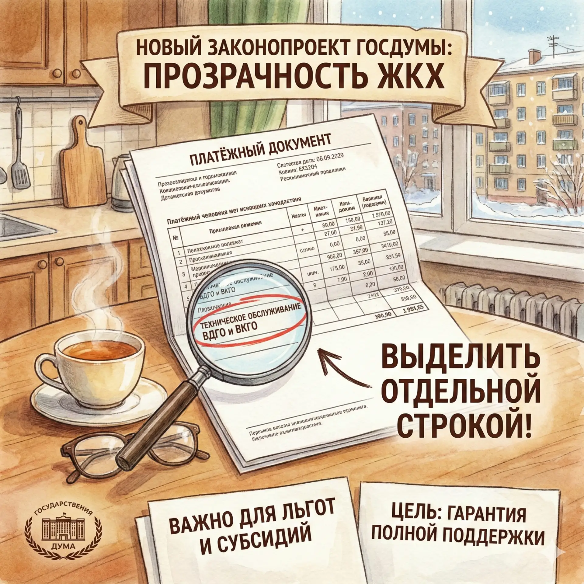 Предлагается чётко и официально выделить в квитанции отдельной строкой плату за техническое обслуживание внутриквартирного и внутридомового газового оборудования (ВКГО и ВДГО).