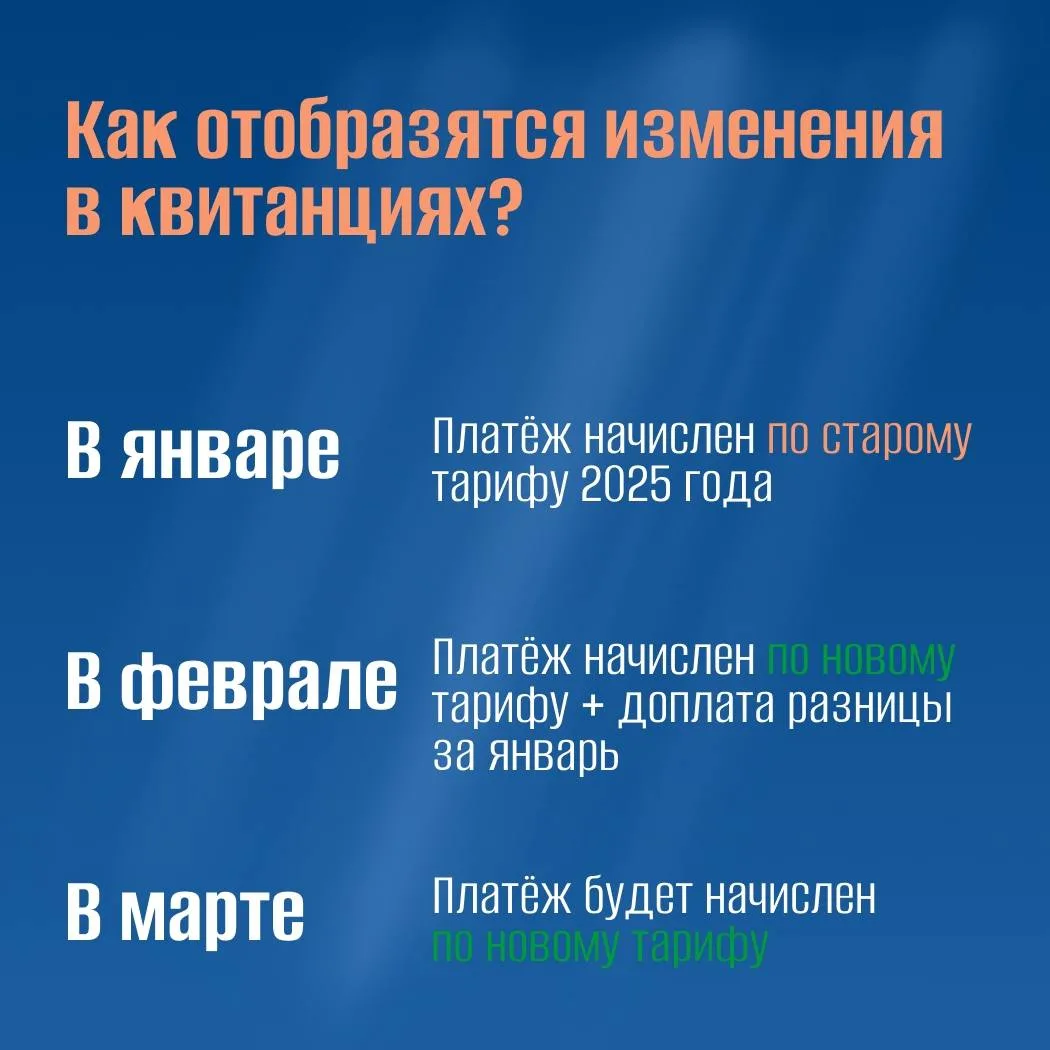 Поэтому в февральских квитанциях сумма складывается из платежа по новому тарифу и доплаты разницы за январь. В марте начисление будет по новому тарифу без доплат.