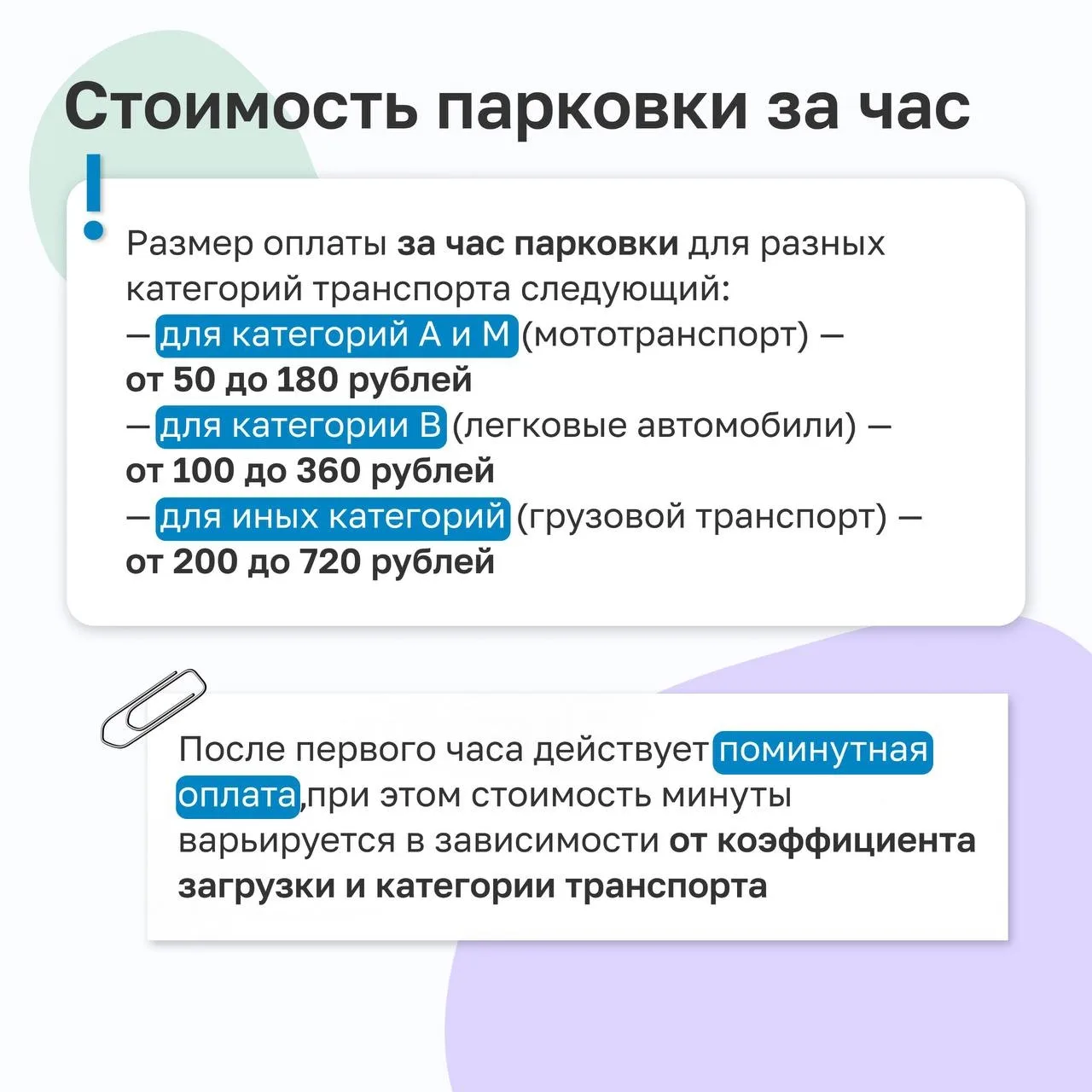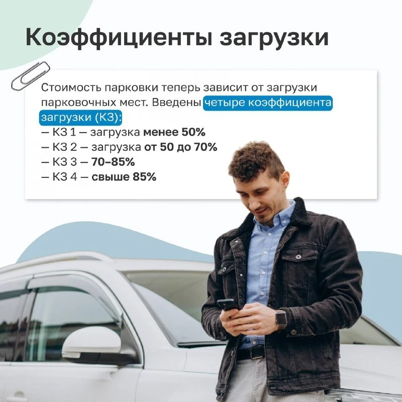 Напоминаем, что с 15 октября 2025 года введена гибкая система тарифов на платных парковках.