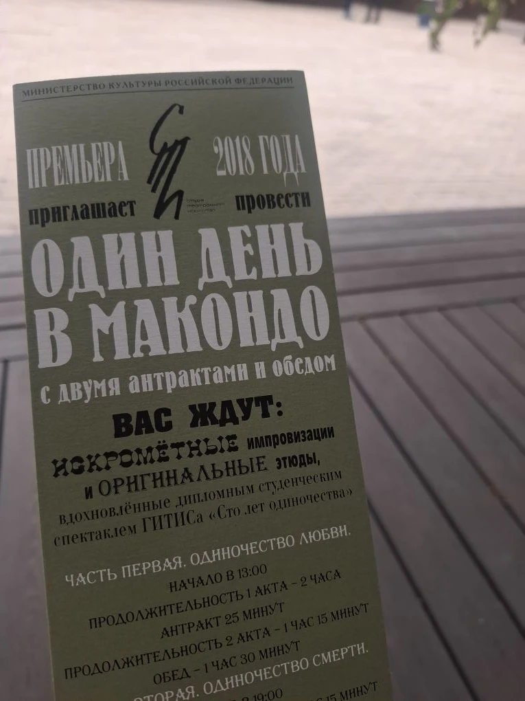 Ну что ж, это был вызов. В душе я была настроена сбежать после второго антракта. А что вв думали? Восемь часов в театре. Восемь! Но это оказался один из лучших спектаклей, что я видела в жизни. И единственная достойная постановка по Маркесу.