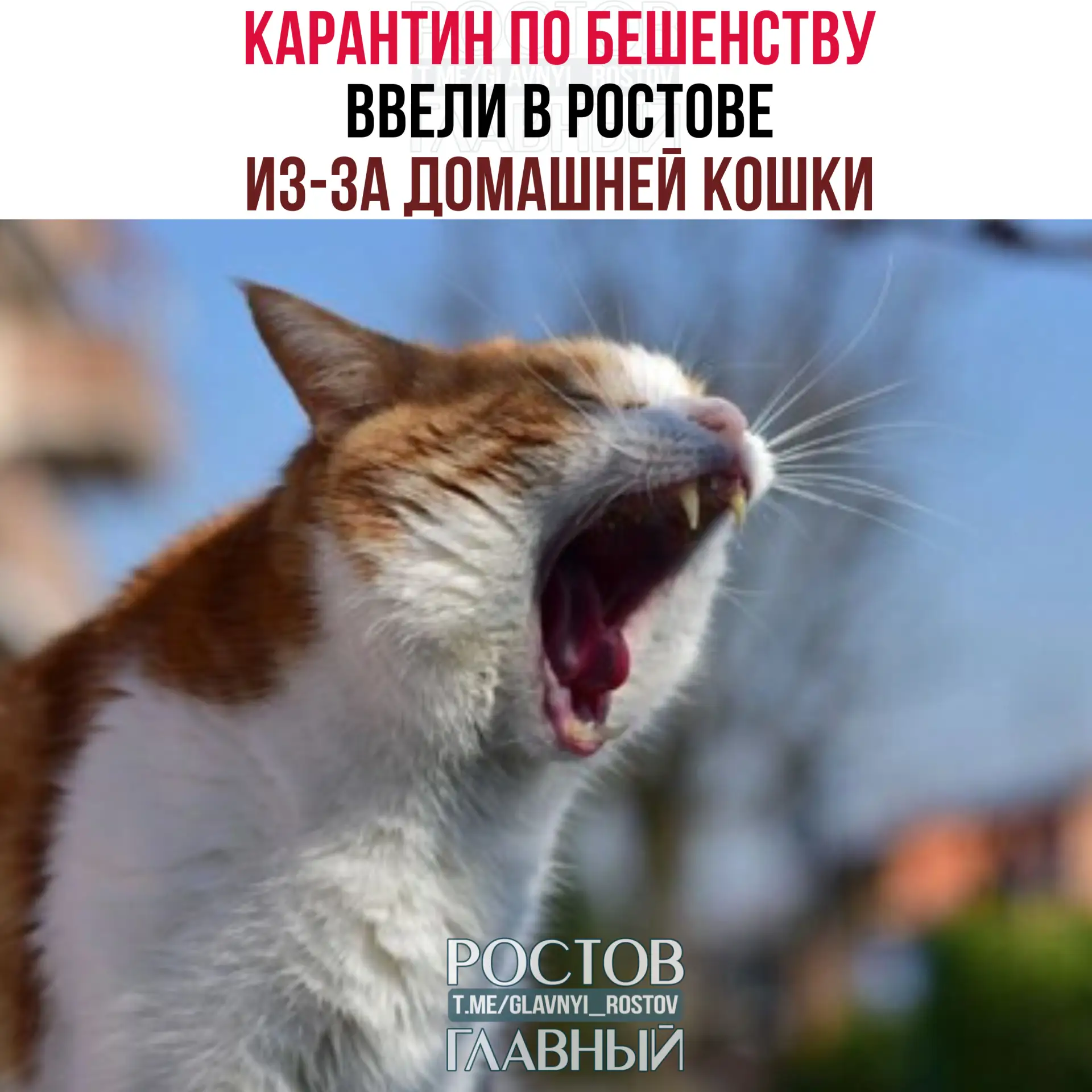 😳 Карантин по бешенству ввели в Ростове из-за домашней кошки. Очаг расположен в частном доме неподалёку от Нижне-Гниловского кладбища — на Войкова, 4.