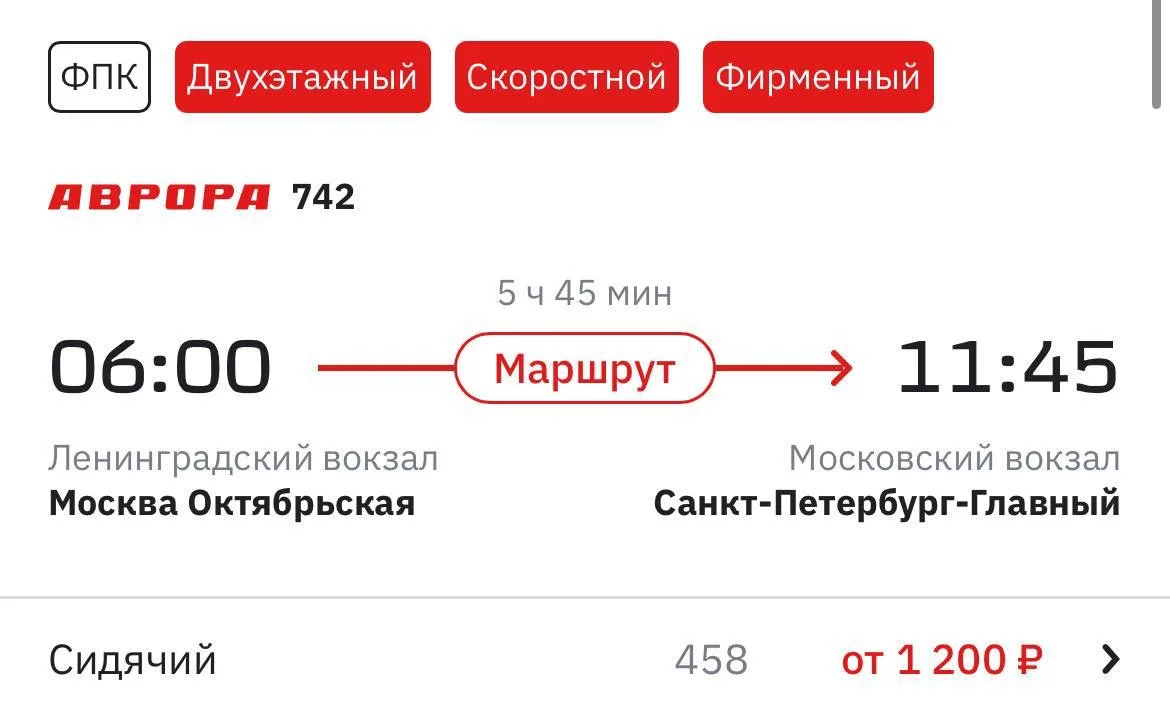 🚅 Уехать из Москвы в Петербург на скоростном поезде можно будет по цене от 1200 рублей — РЖД временно снизили цены на билеты