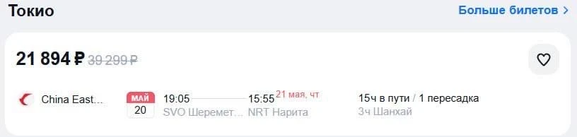 ✈️ За 20 тысяч рублей можно улететь из Москвы в Японию под конец мая