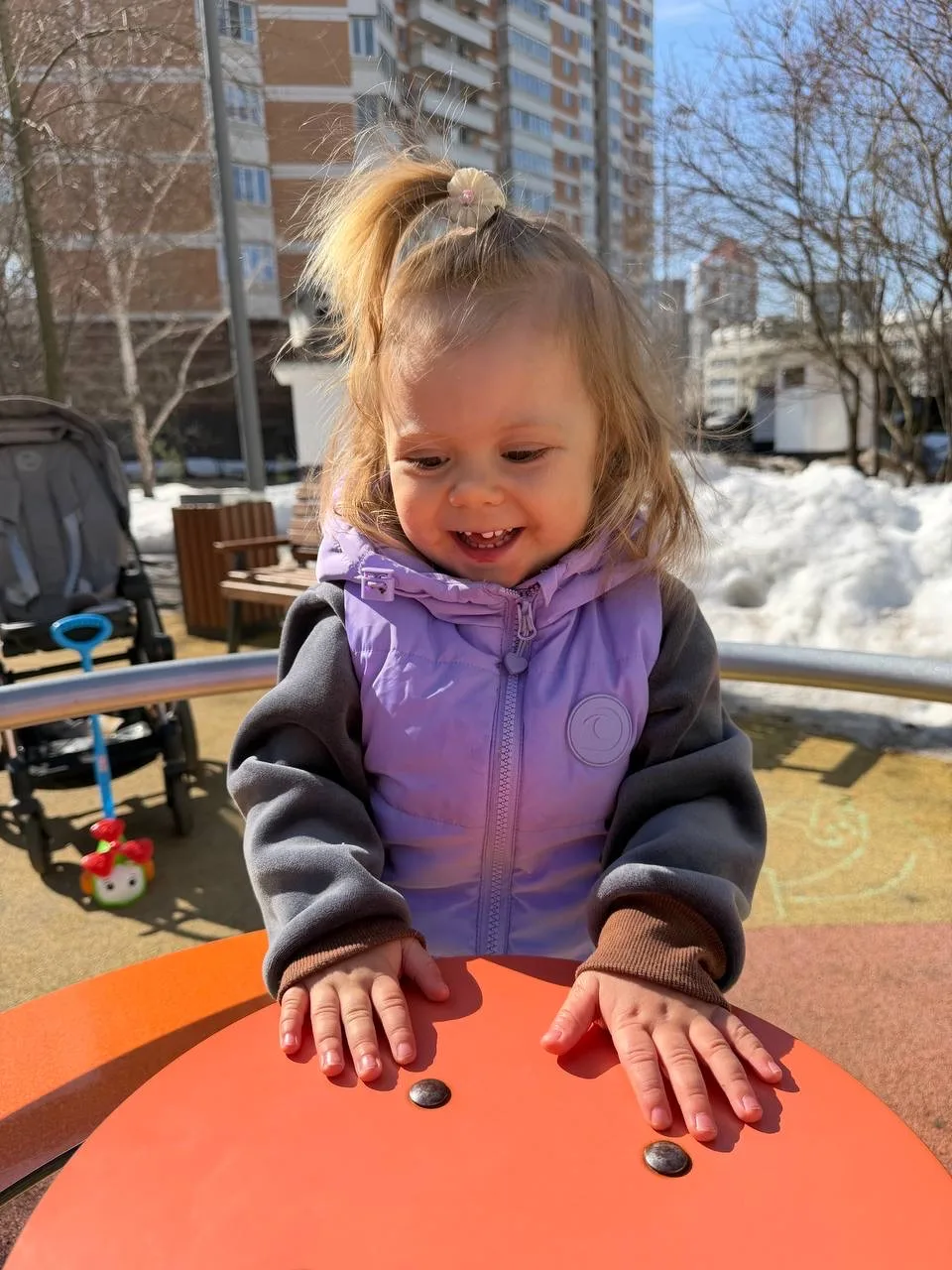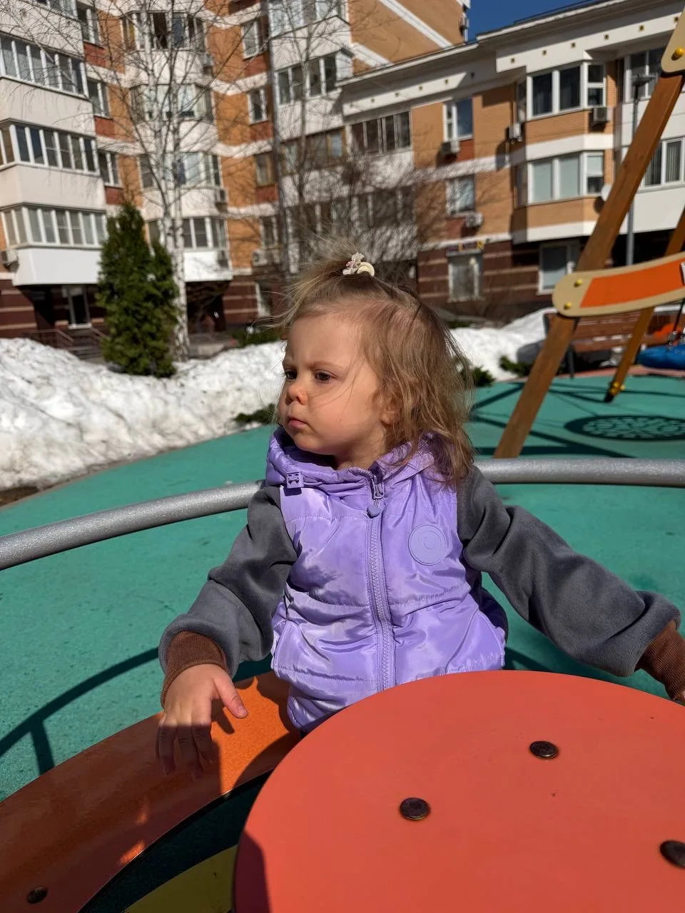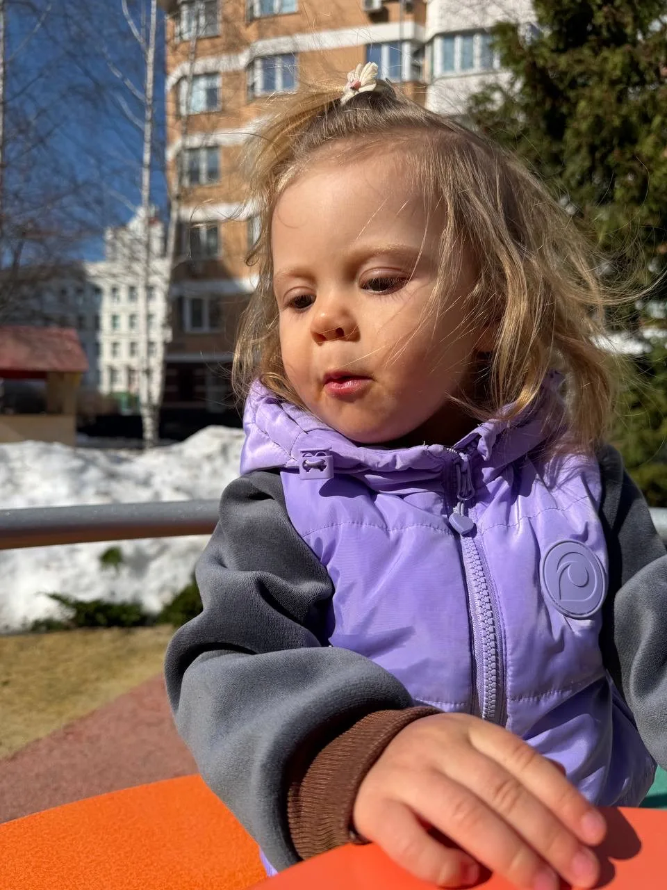 Но бабульки не сдавались, одна даже подошла и пыталась надеть Булоньке капюшон. Тихо-мирно, в игровой форме, но с немым укором в сторону меня, плохой матери, которая шапку ребенку не надела.