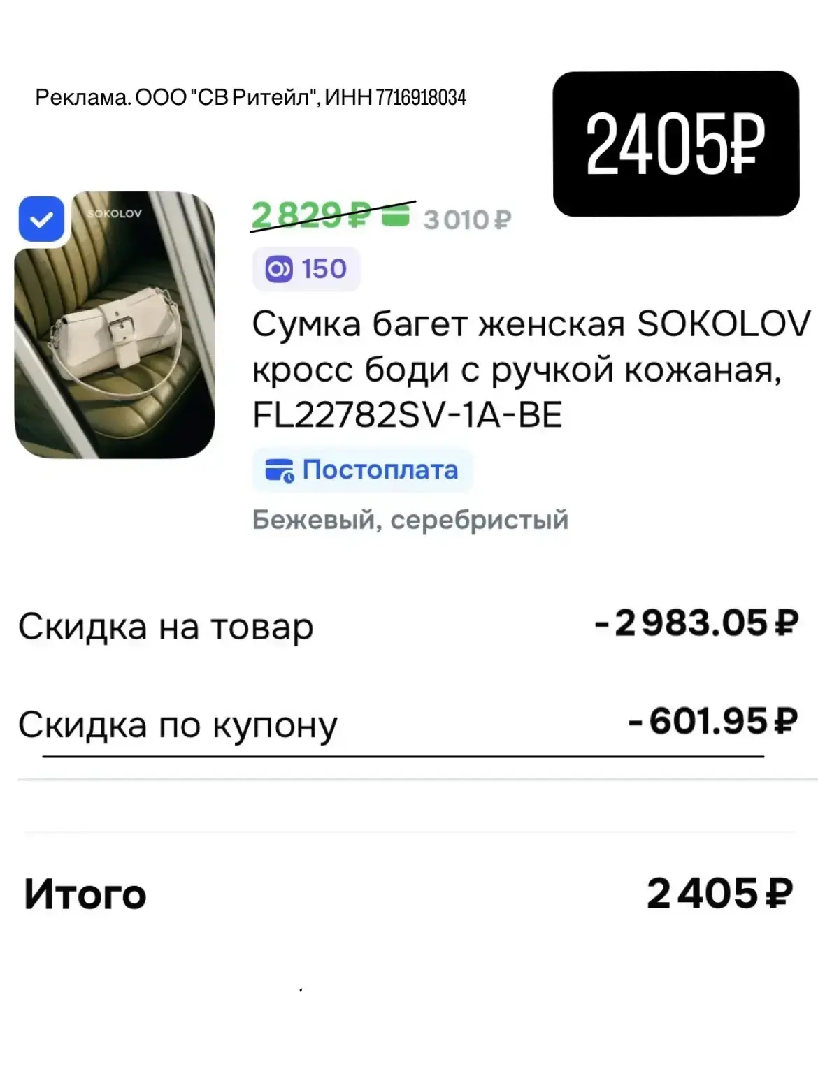 C26CAD0C7AE7 - Скидка 15% на сумки бренда SOKOLOV на OZON на первый и все повторные заказы