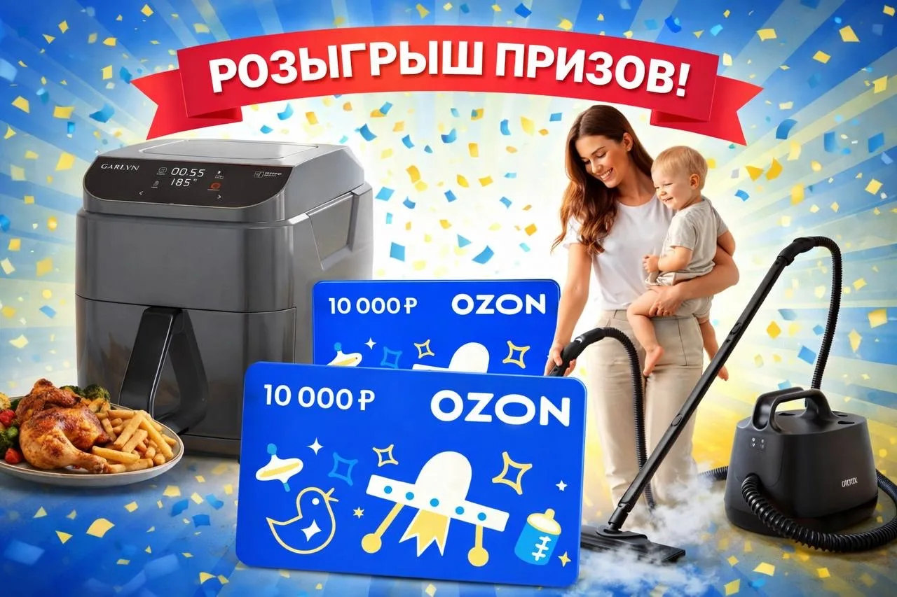 Дорогие девочки! Кто пропустил —мы дарим приятнейшие подарки: аэрогриль, пароочиститель и сертификаты на 10 000₽ на Ozon 🔥