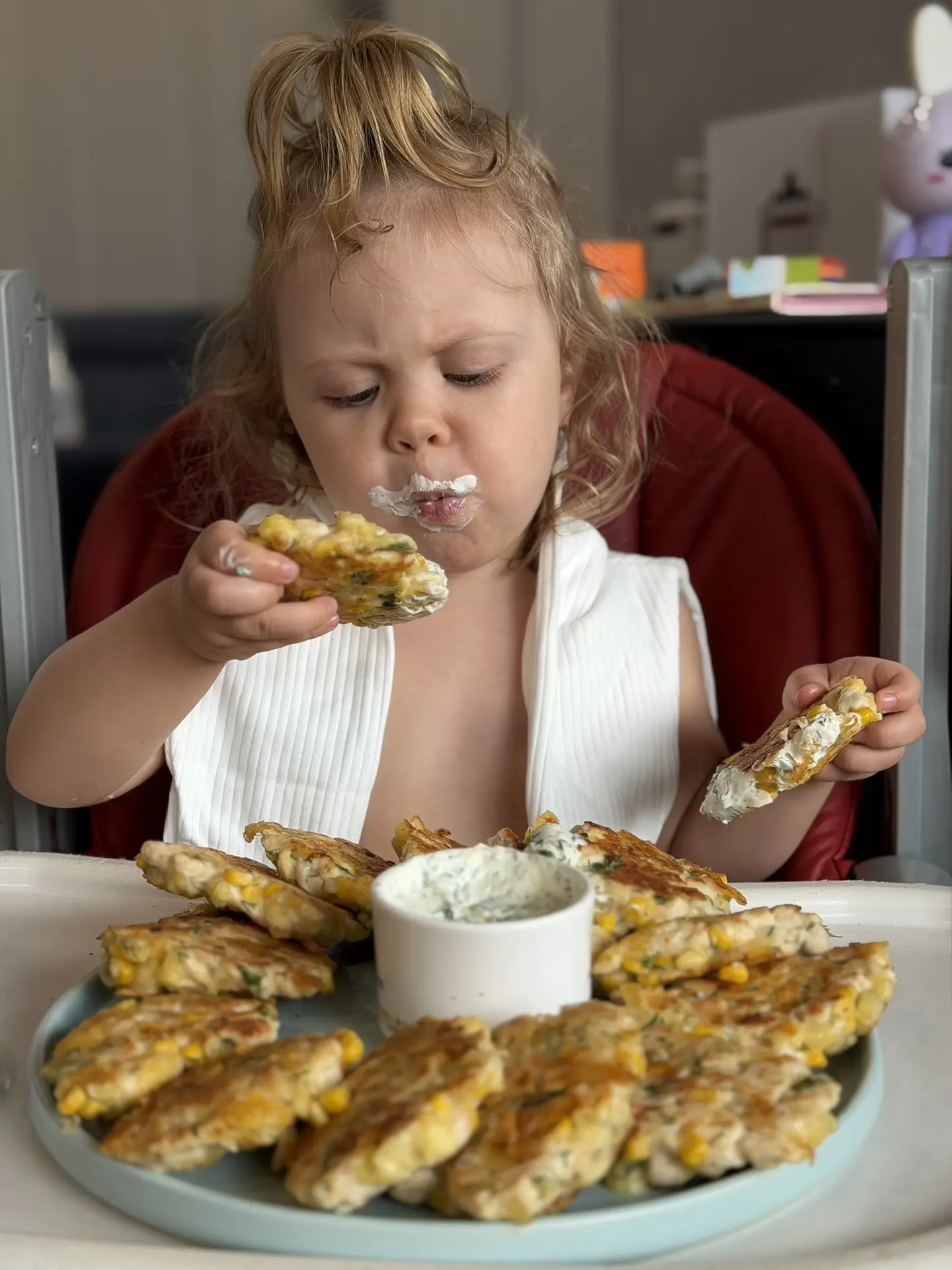 А вот с Ксюшей главное успеть поесть самим, потому что она отнимает все и у всех…Но самая большая страсть - это котлеты. Чтоб вам было понятно, первое слово Ксюши не «мама»… а «коклекта»🗿и «отдай, МОЁЁЁ»