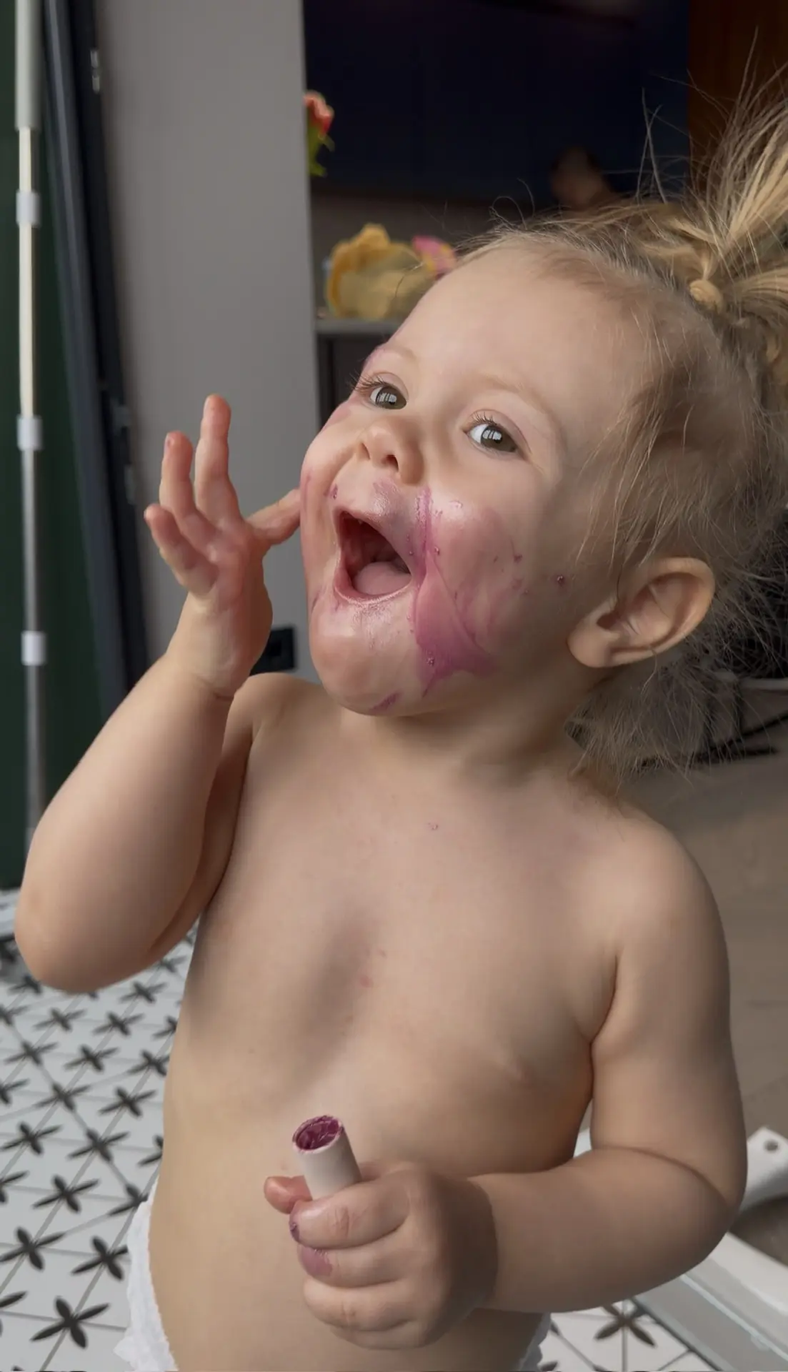 Я не знаю, откуда у Булоньки такая страсть к макияжу😅…но абсолютно все, что попадает к ней в руки она сначала пробует намазать на лицо! 🫠