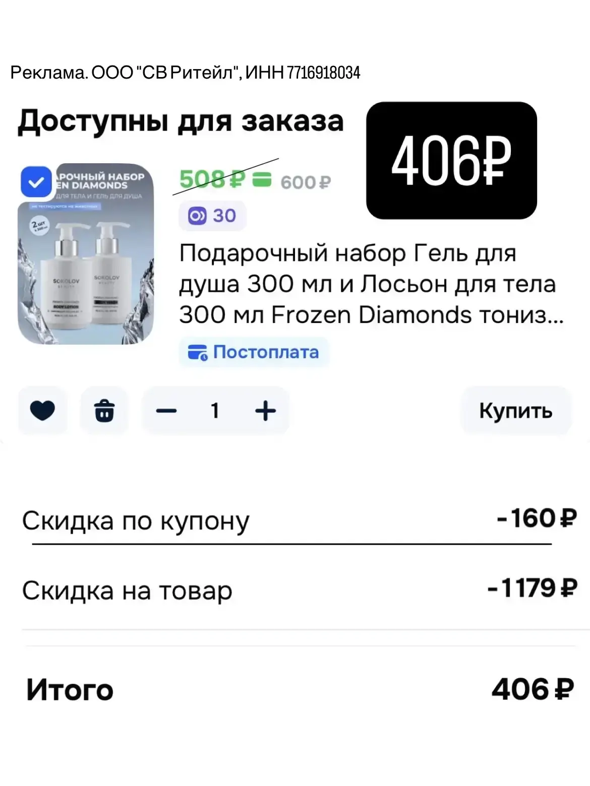 C4512B6CA879 - Скидка 20% на косметику бренда SOKOLOV на OZON на первый и все повторные заказы