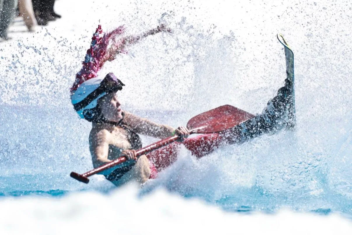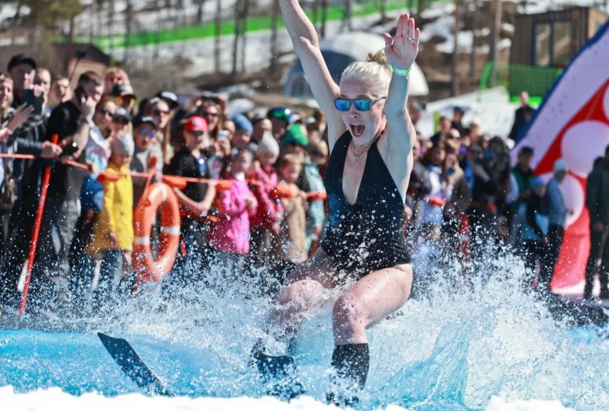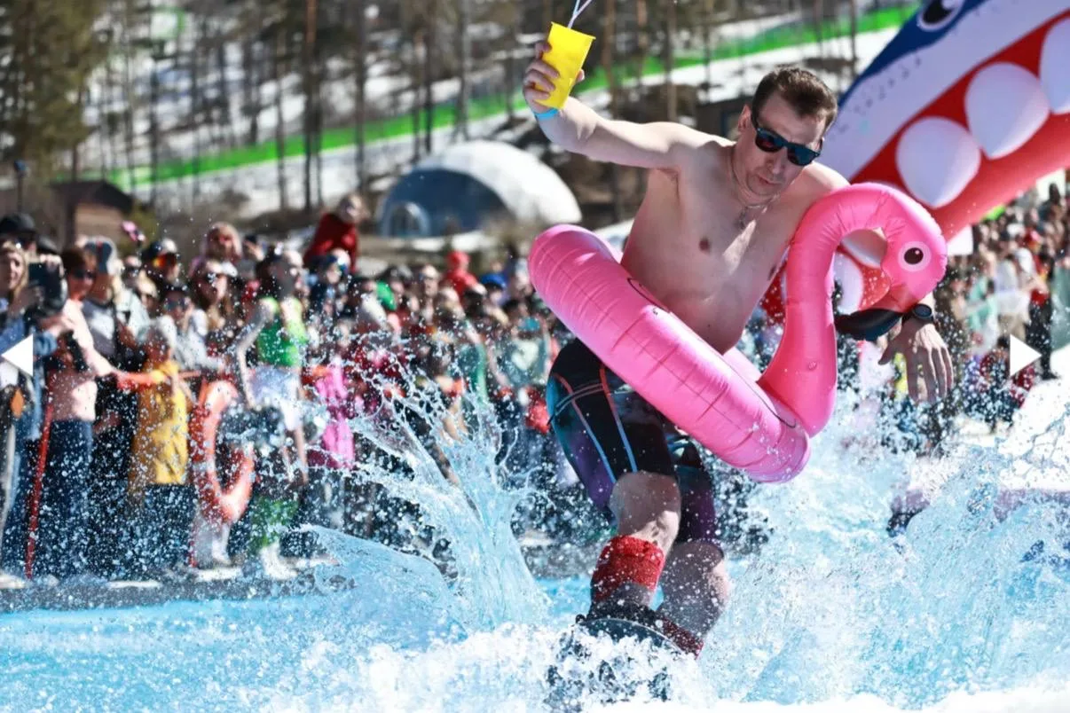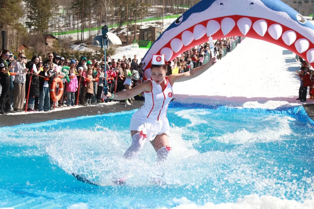 Фестиваль "Прыжок в лето" отгремел 3 и 4 апреля. Самым зрелищным моментом закрытия стал спуск райдеров с горы в бассейн. Участники устроили настоящий карнавал.