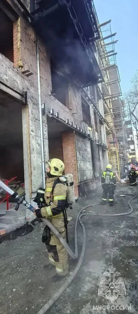 По его словам, конструкции здания не пострадали, однако оплавился участок уже смонтированного утеплителя, который заменят.