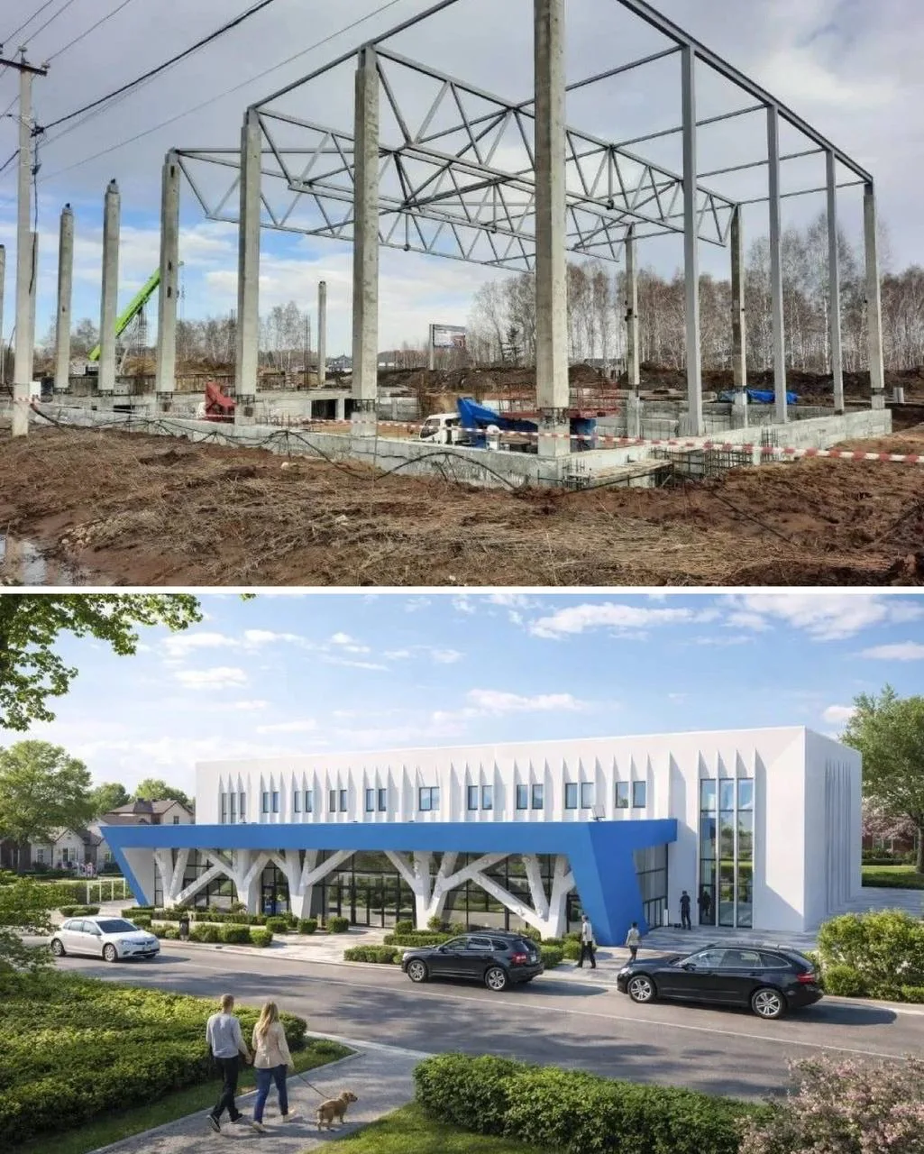 В посёлке «Берёзовый мыс» предприниматель Андрей Кутулуцкий строит фитнес‑центр с бассейном. Проект разработал архитектор Владимир Золотов: фасад будет в бело‑синих тонах, входную группу украсят колоннами в виде стволов берёз, площадку перед зданием благоустроят.