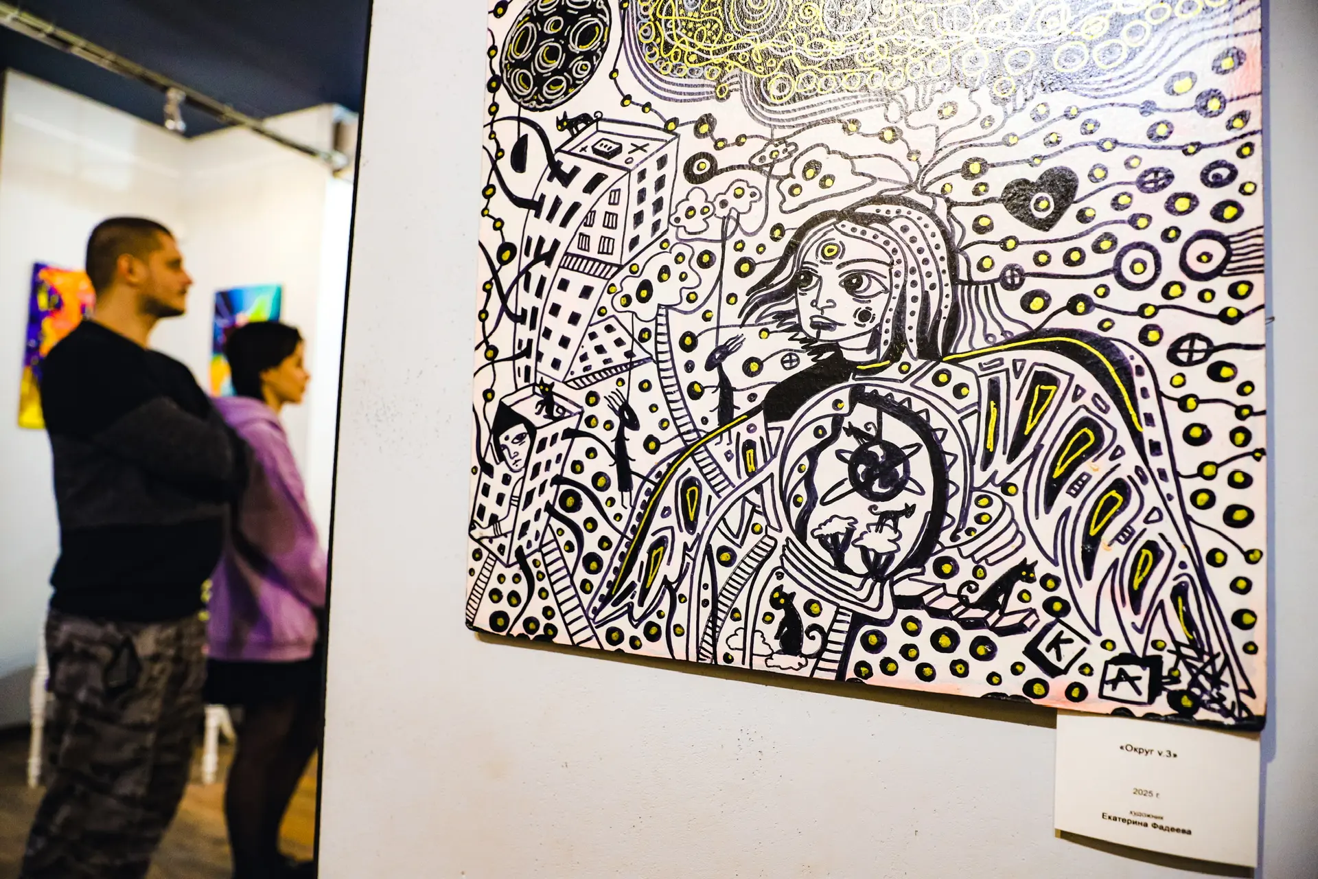 На выставке представлены более 30 работ 13 авторов из разных регионов России: Москвы, Великого Новгорода, Ярославля и Республики Башкортостан. Особое внимание привлекает видео-арт, посвящённый философским размышлениям о космосе и месте человека во Вселенной.