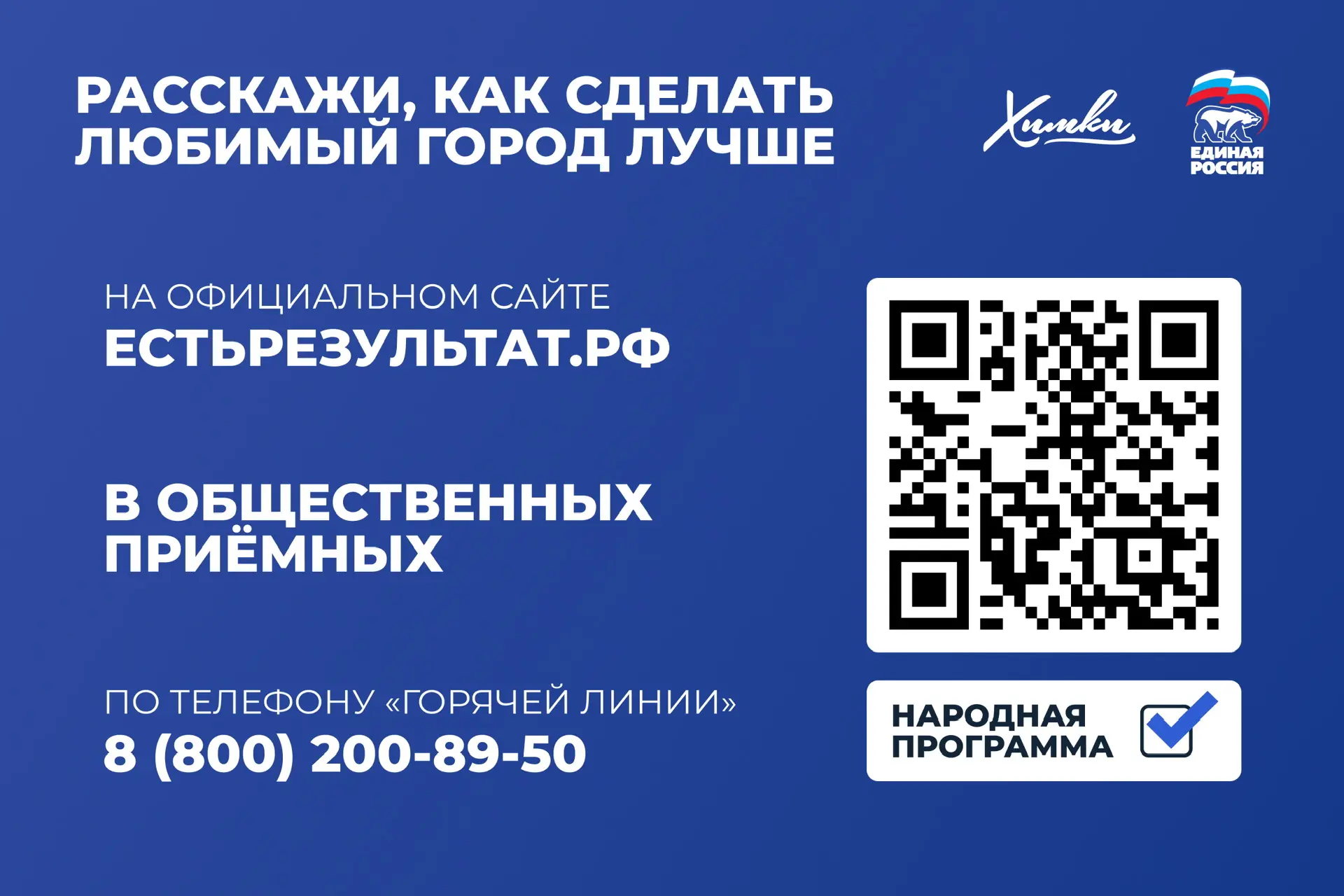 Уже сейчас формируется новая Народная программа — предложения жителей принимаются на сайте естьрезультат.рф, на горячей линии 8-800-200-89-50 или в местной общественной приемной партии.