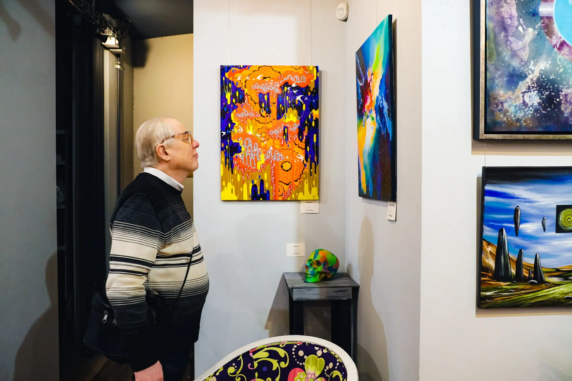 Коллективная выставка «Космос — 2026» открылась в арт-галерее «МОСТ» в Химках. Экспозиция приурочена к 65-летию первого полёта человека в космос.