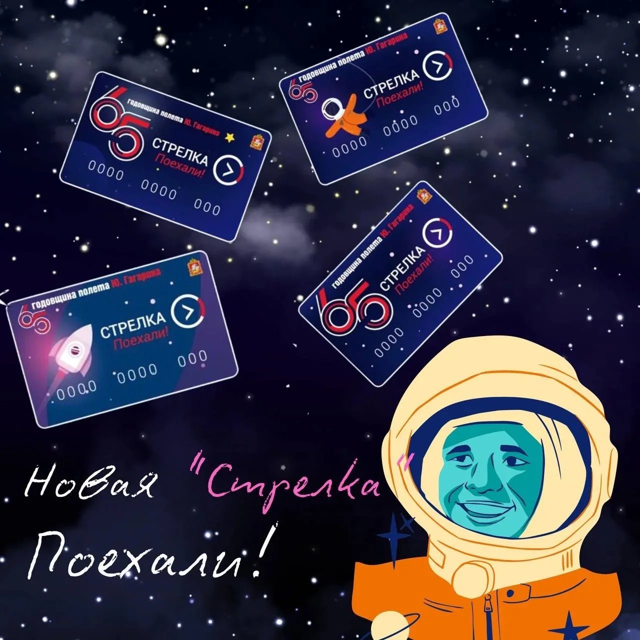 К Дню космонавтики «Мострансавто» выпустило лимитированную серию транспортных карт «Стрелка». Тираж — пять тысяч экземпляров. Серия приурочена к 65-летию первого полёта человека в космос.