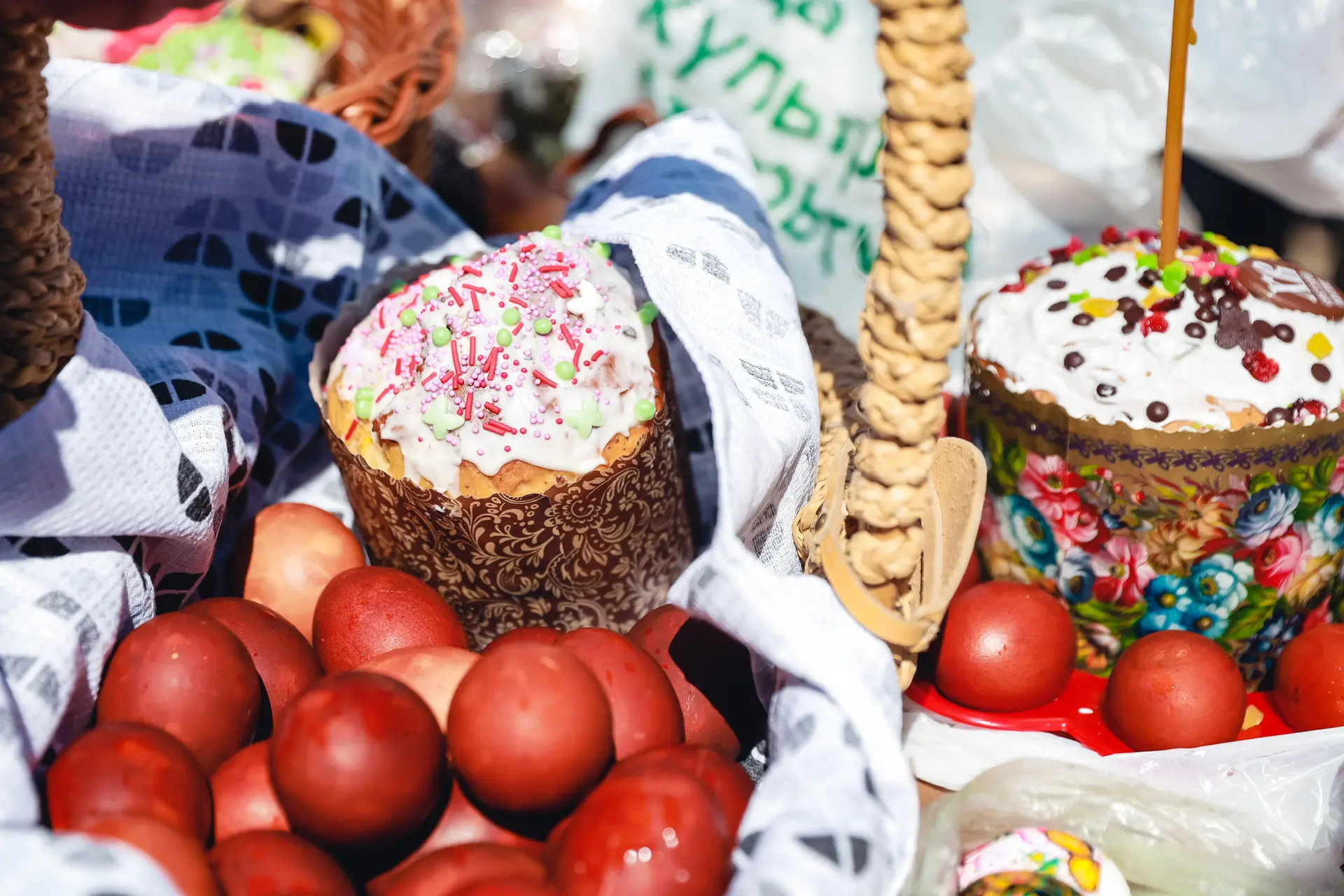 Традиционно верующие готовят особые угощения: выпекают куличи, творожную пасху и красят яйца.