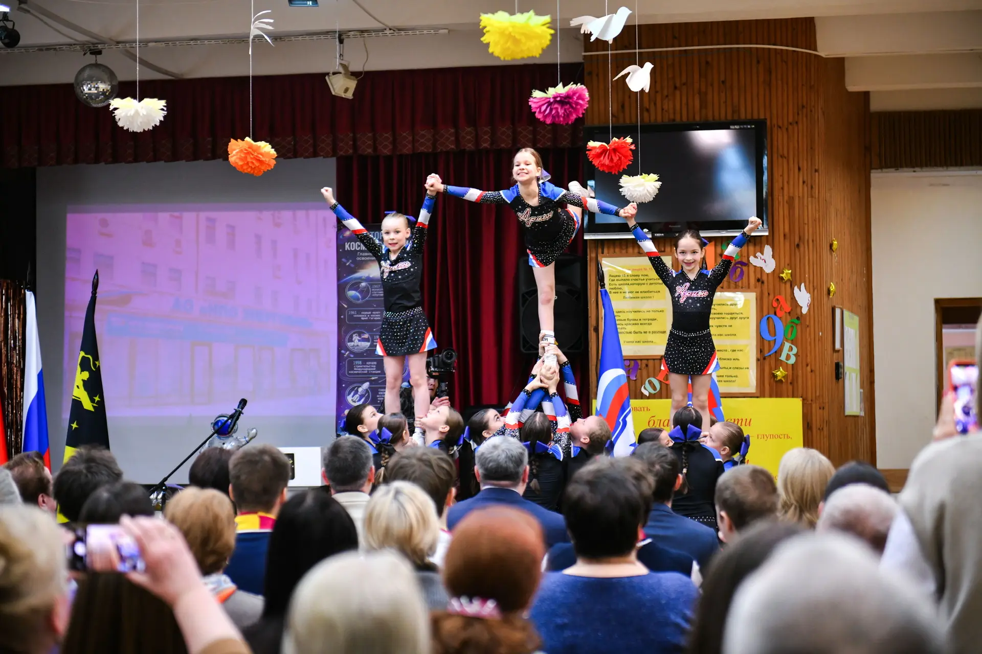 Внутри — современные классы с новой мебелью и оборудованием. В актовом зале появилась сцена и техника, а спортзал оснастили новым инвентарём.