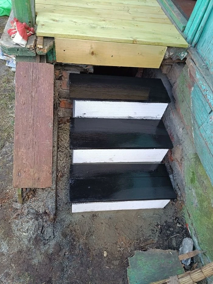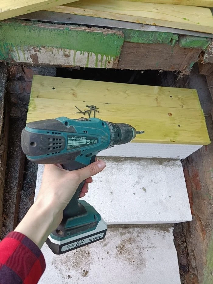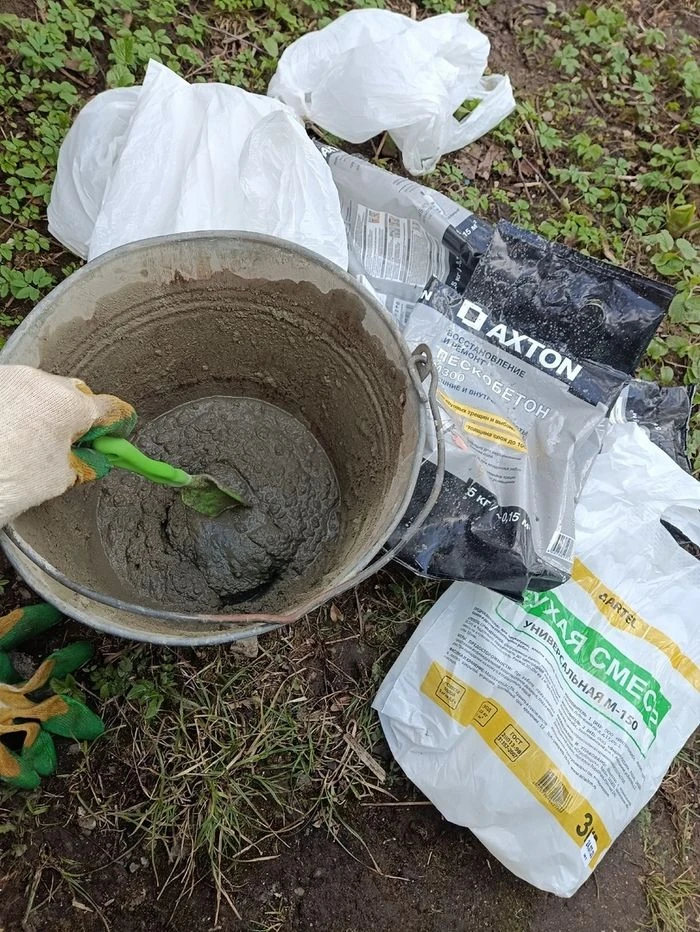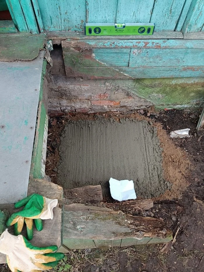 Сгнило крыльцо бабушкиного дома, а она уже еле ходит. Купила блоки, сама сделала. Криво, но лучше, чем было.