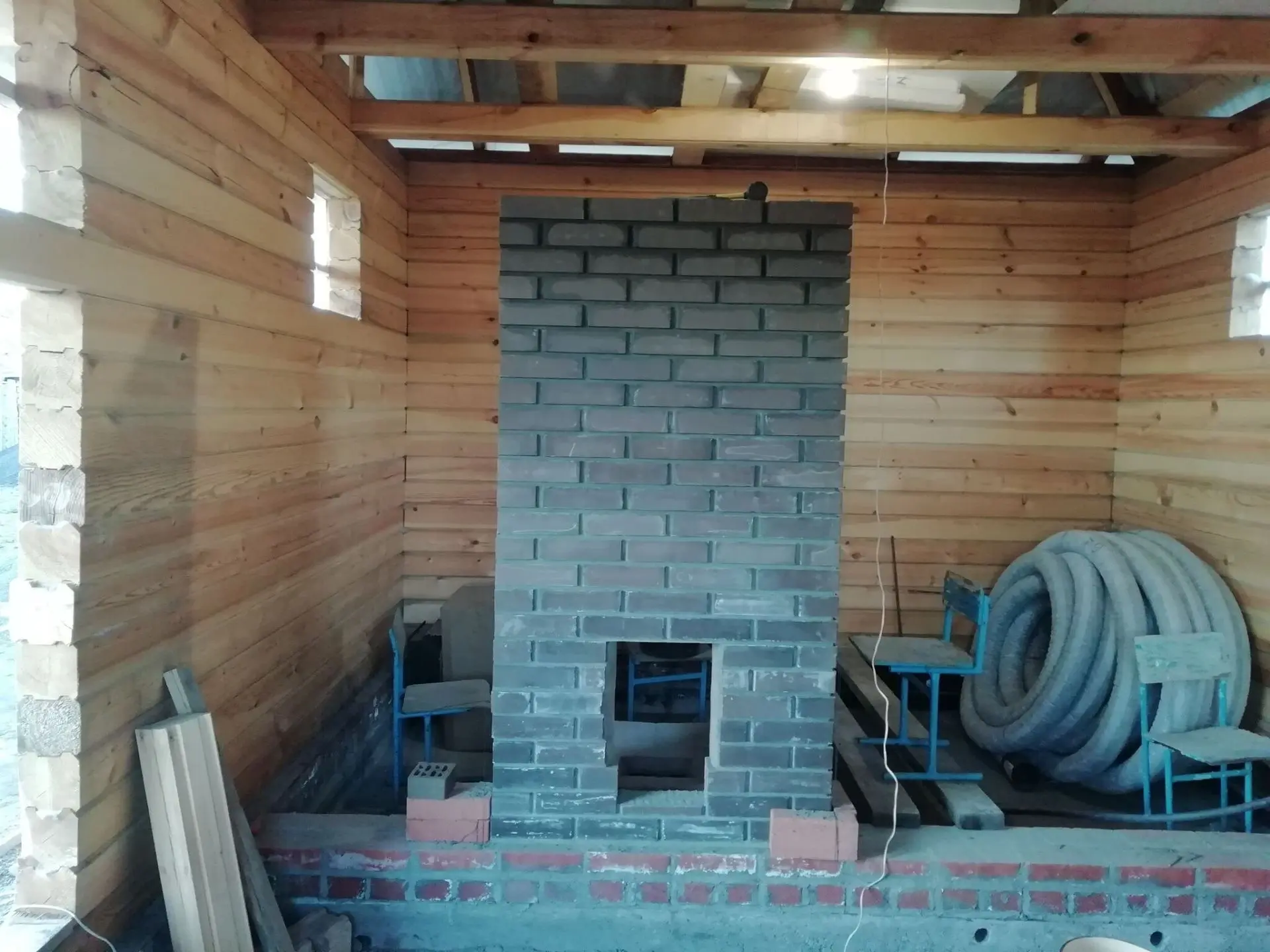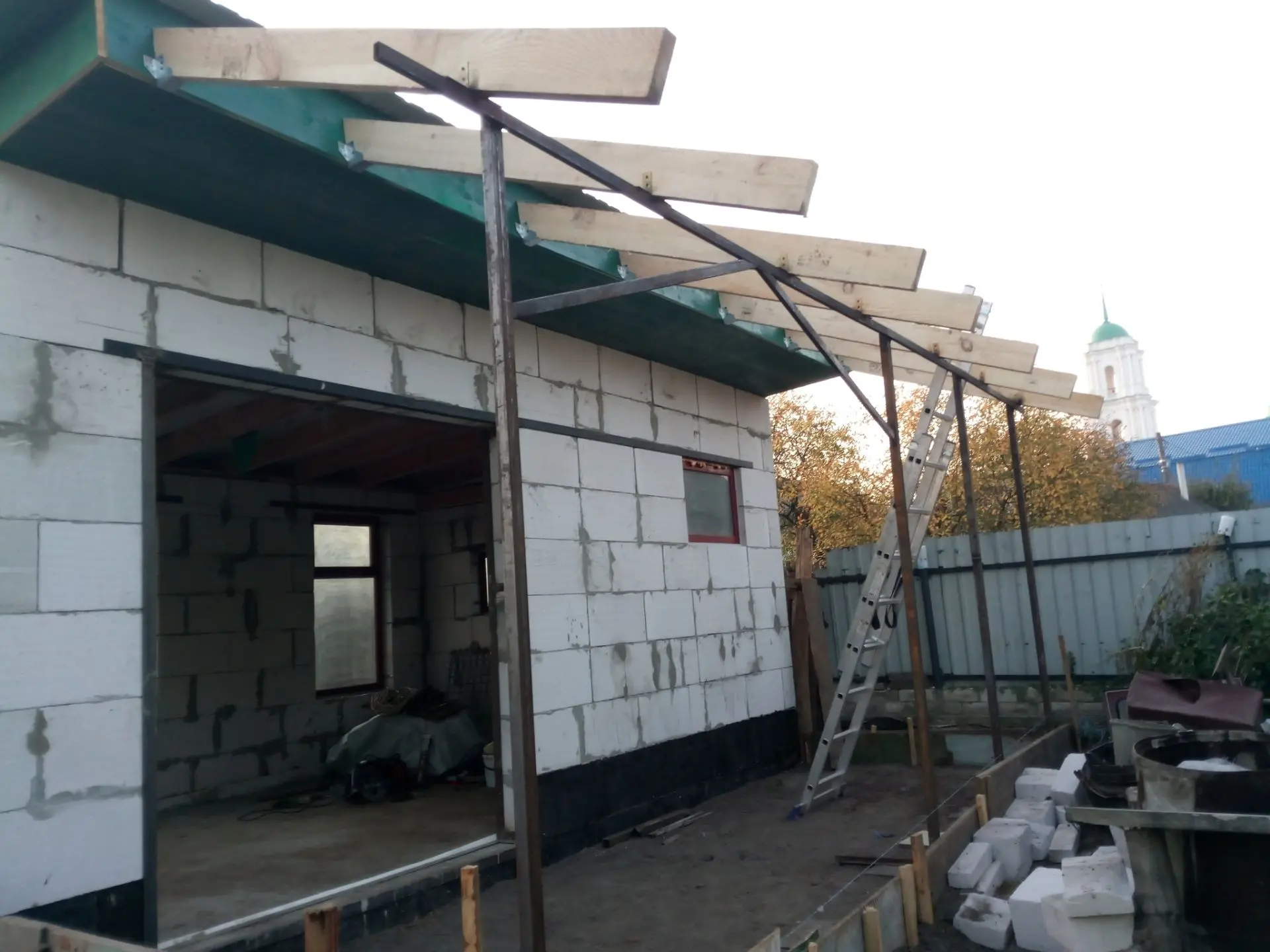 Наступил 2021 год и в начале мая начал выкладывать портал для печи. За отделкой бани прошел весь летний год и его не хватило. Понял, что не хватаетместа. Решено было прирастить крытую веранду.