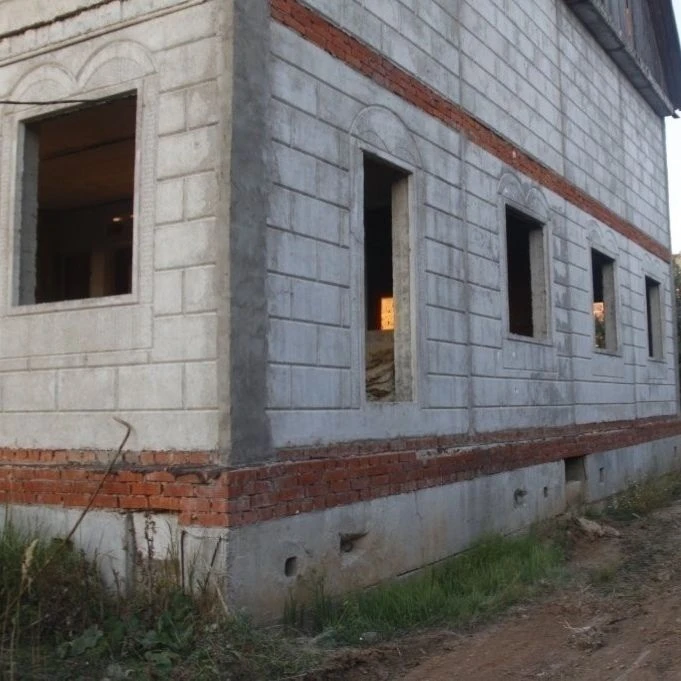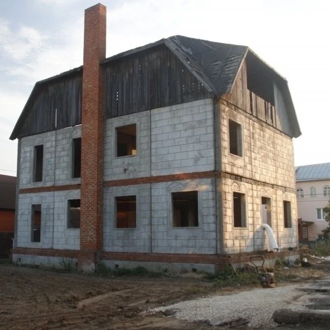 Цоколь из ФБС, три этажа, перекрытых плитами ПК, стены из пустотных плит. Внутри — чёткая геометрия: центральная несущая стена, два больших зала на каждом уровне, плюс небольшая комната. Мансарда когда-то была, но сгнила под ноль. И, честно говоря, я даже рад — с такими габаритами дома она просто лишняя.