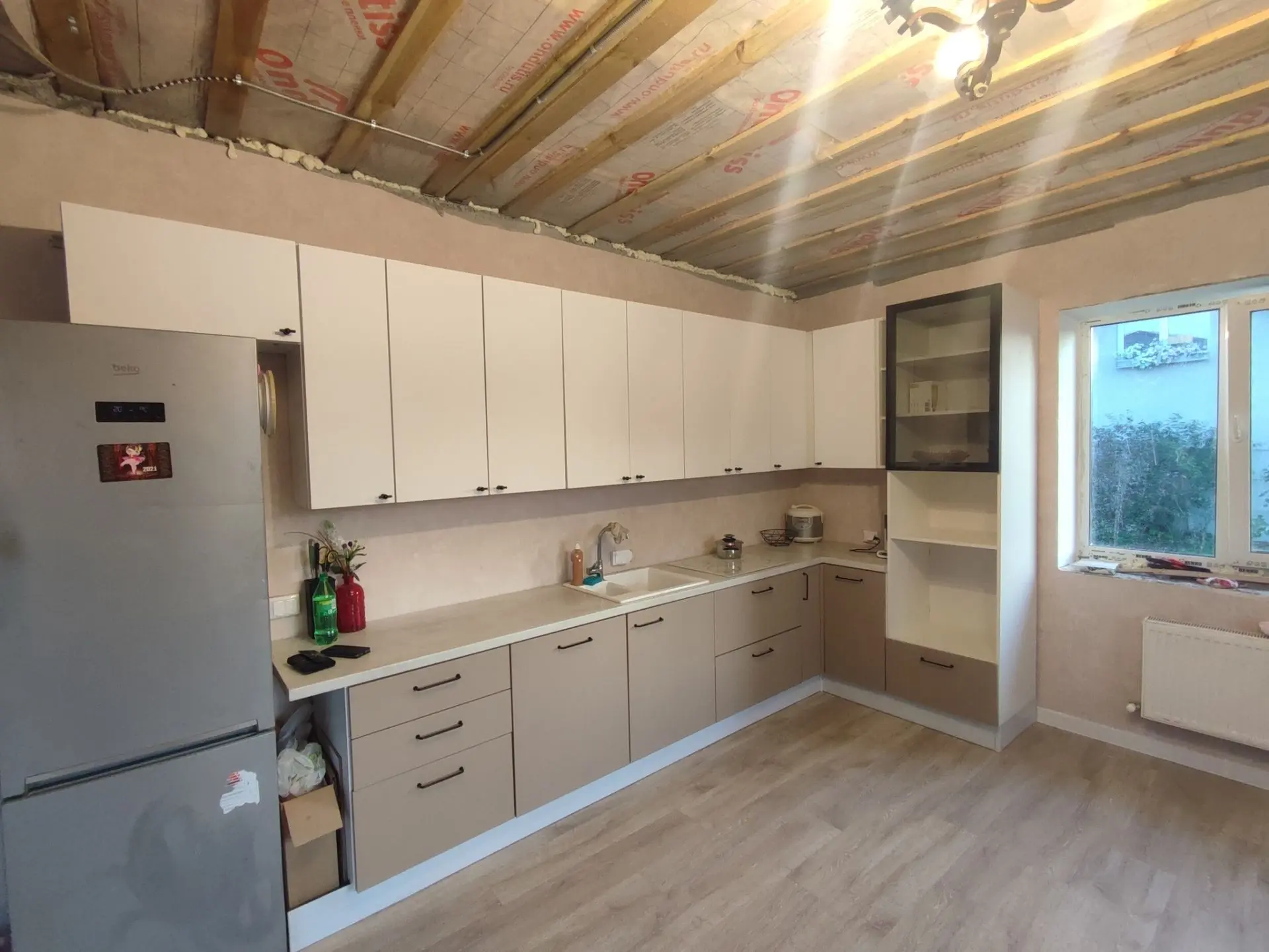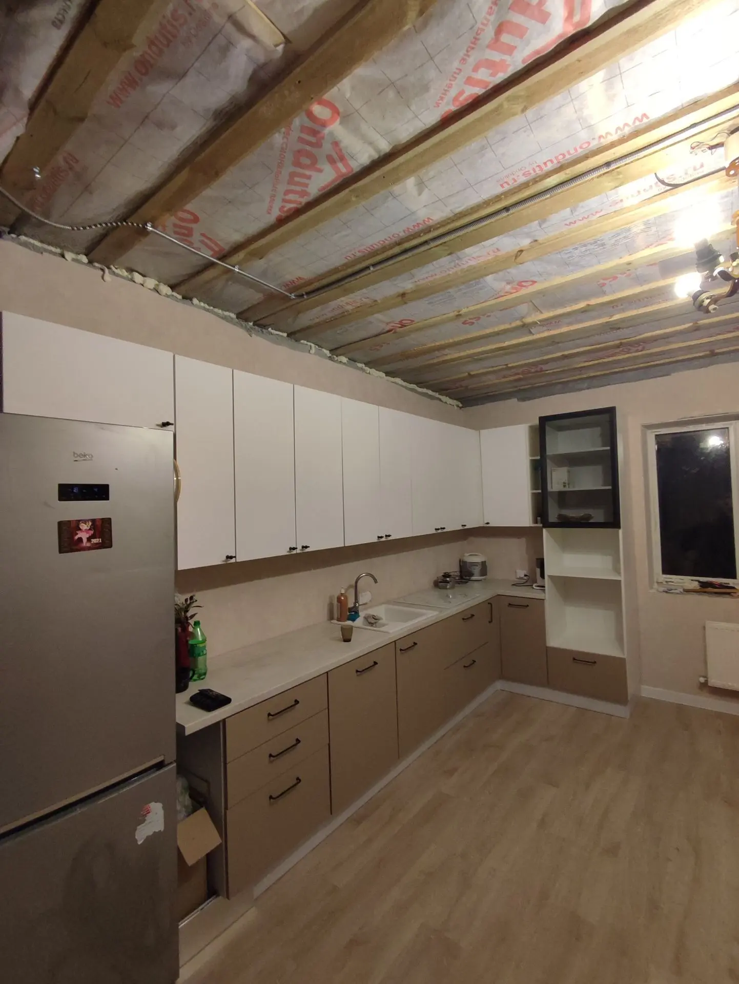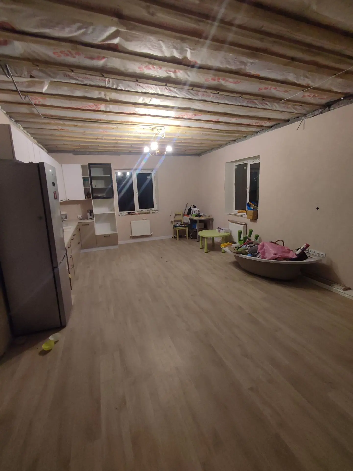 Наконец-то с семьёй переехали в свой дом, 3 года скитаний и наконец у нас есть свой угол. В доме тепло, есть все что необходим. Да нету потолка, коридор без обоев, 2 из 6ти комнат вообще в бетоне.